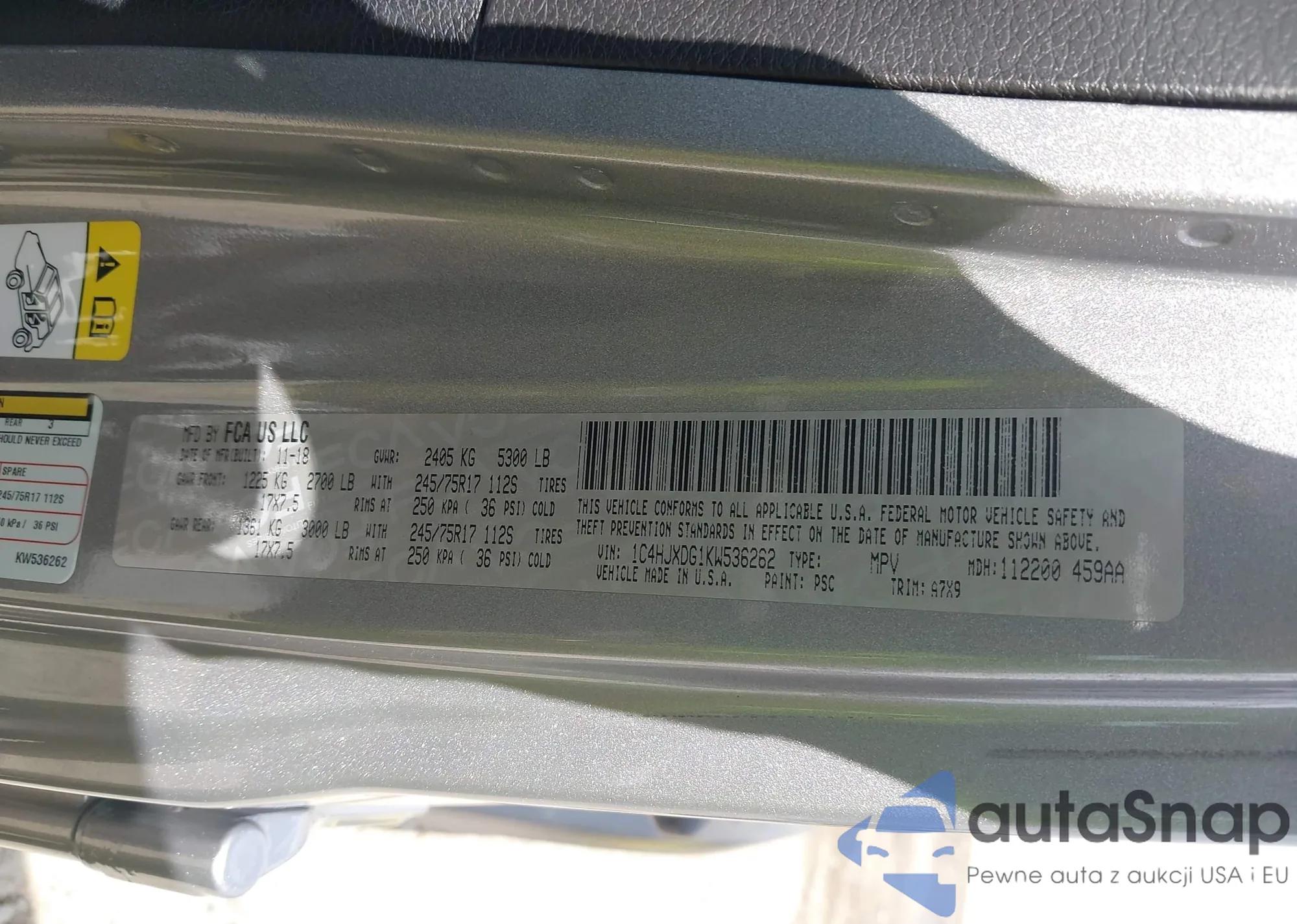 • VIN 5J6RW2H88KL002960