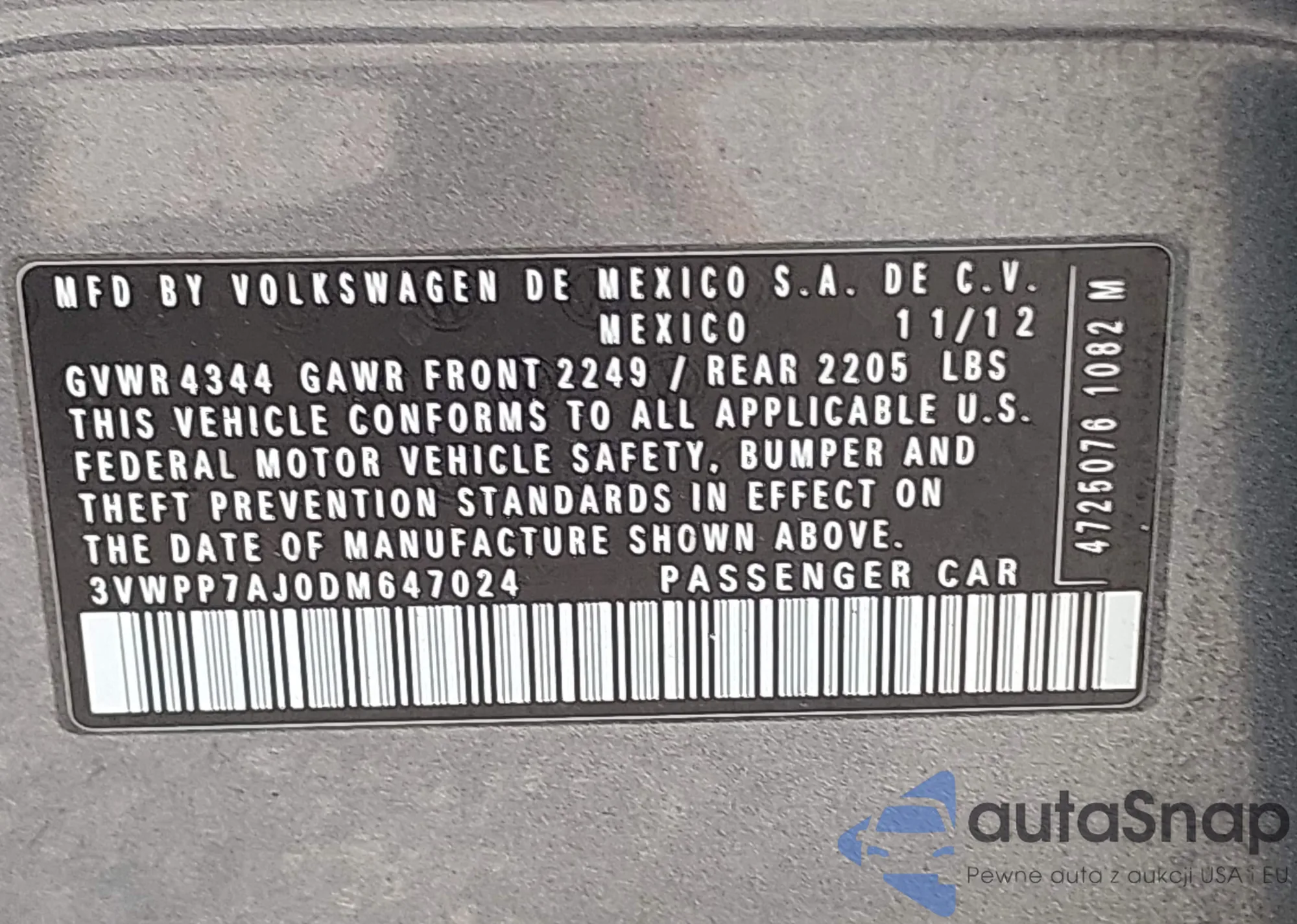 • VIN 4T4BF3EK8BR191635