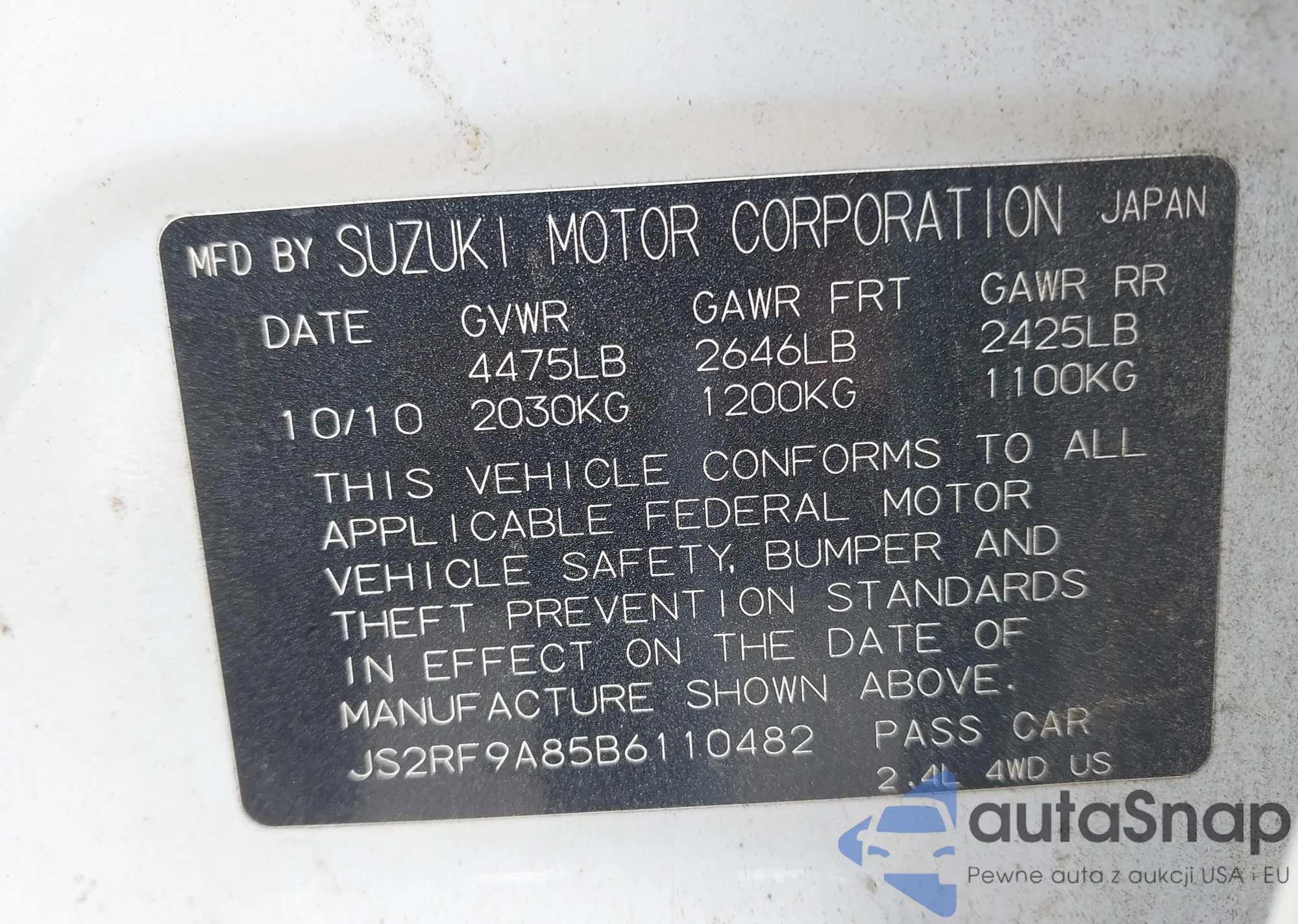LOT: 42908497 VIN: JS2RF9A85B6110482