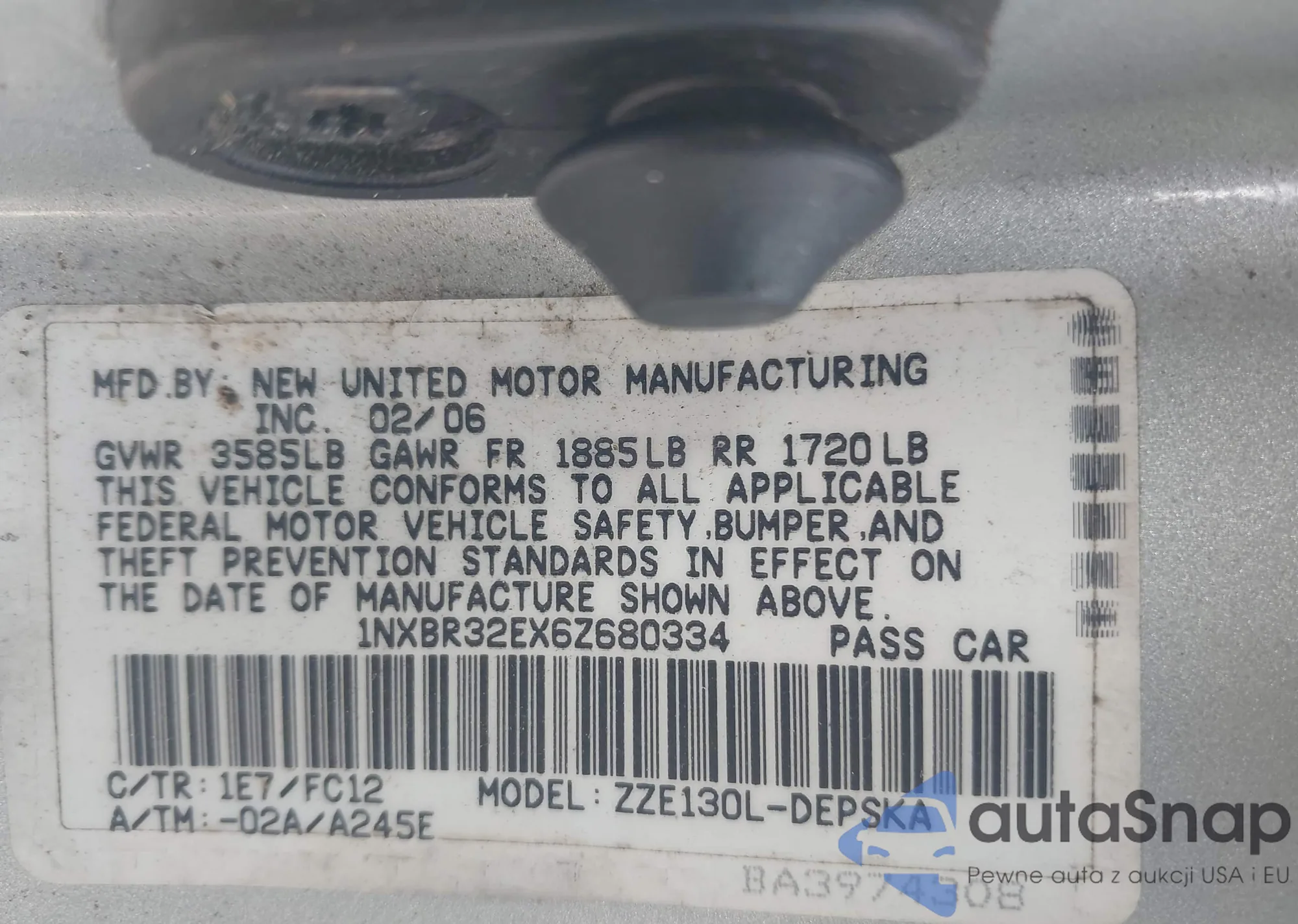 • VIN 1NXBR32EX6Z680334