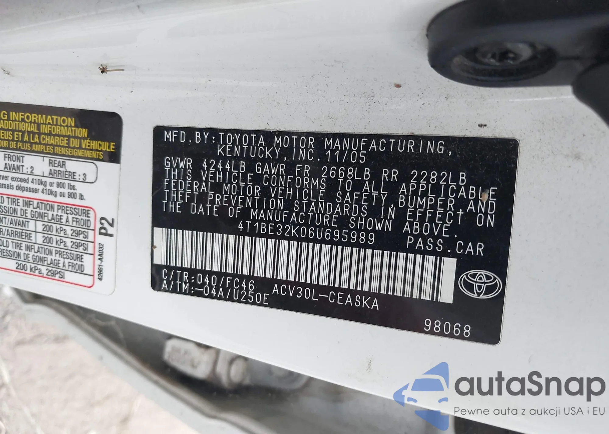 • VIN 4T1BE32K06U695989