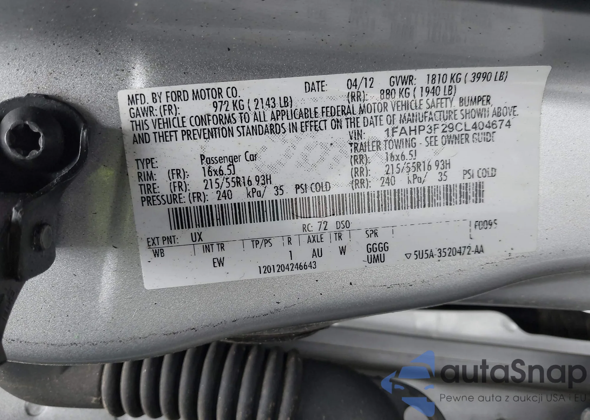 • VIN 1FAHP3F29CL404674