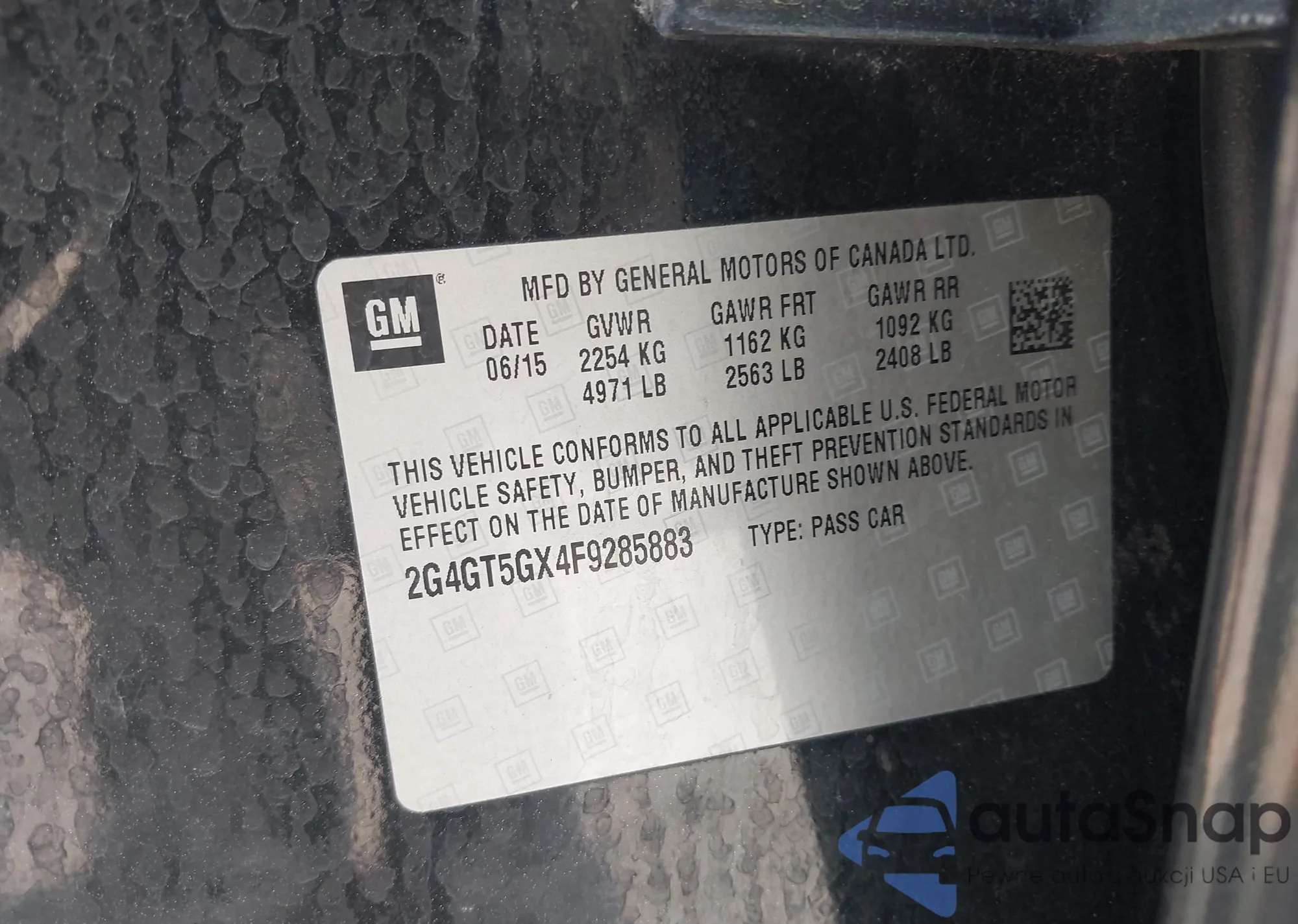 LOT: 42388435 VIN: 2G4GT5GX4F9285883