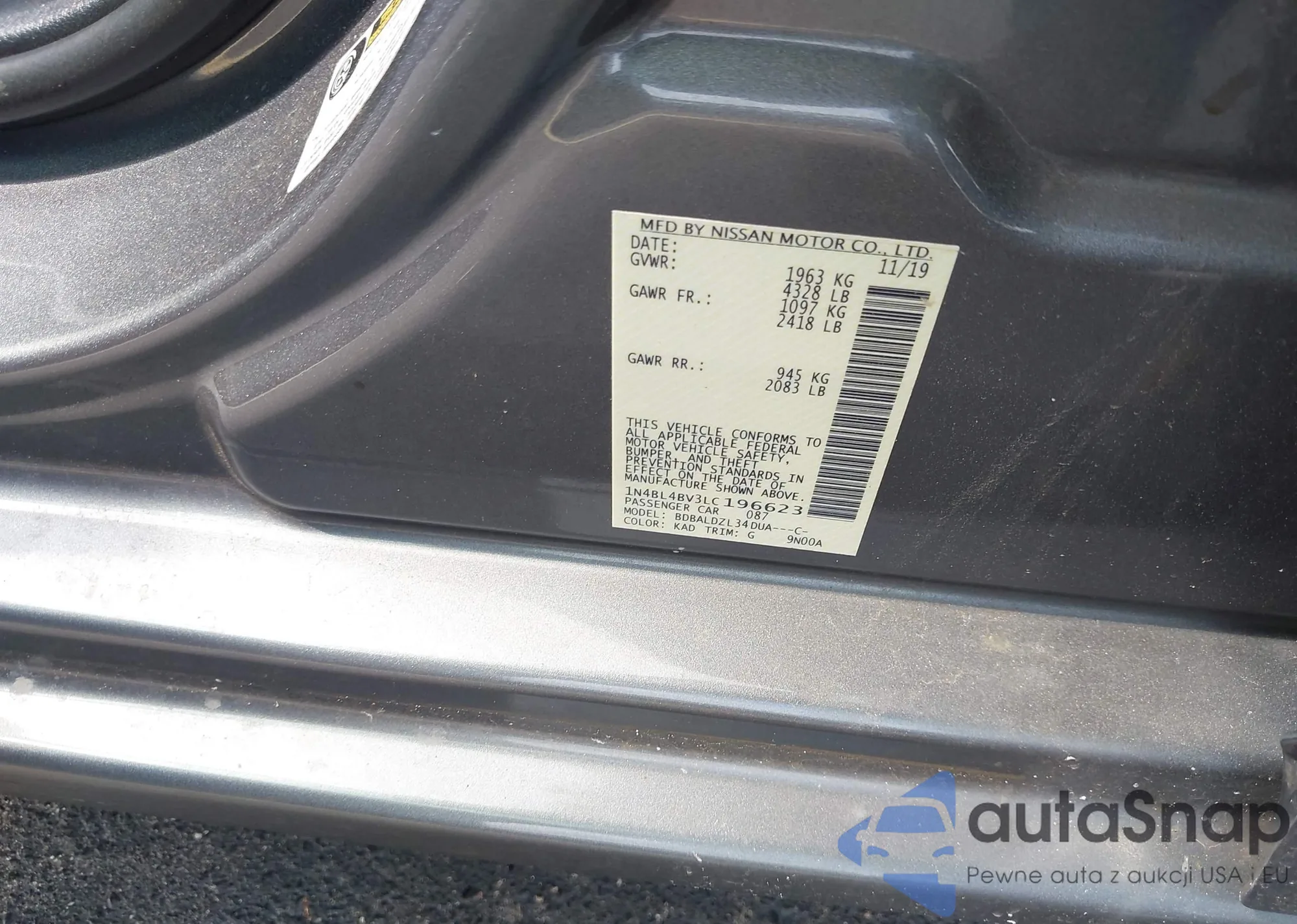 • VIN 1N4BL4BV3LC196623