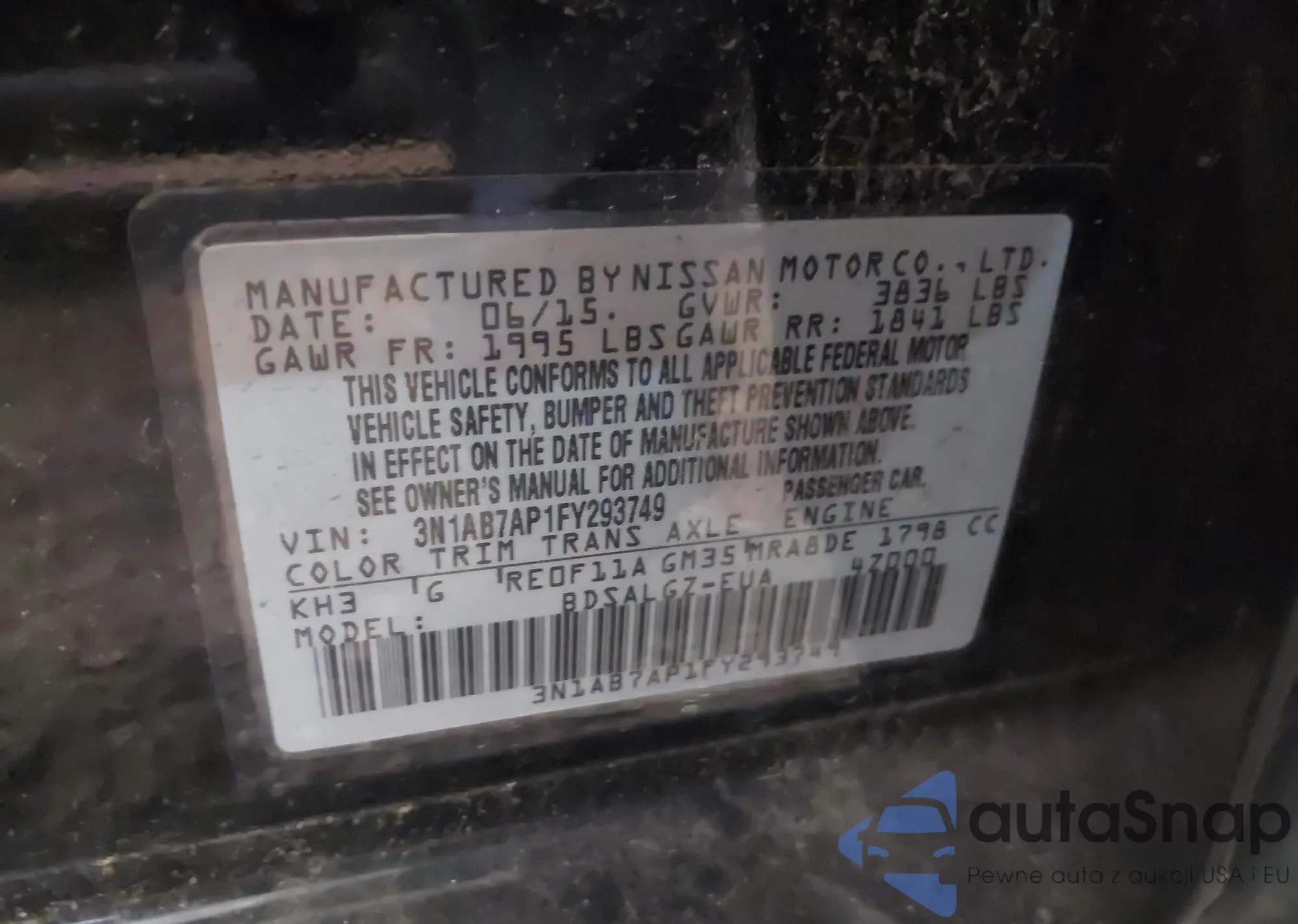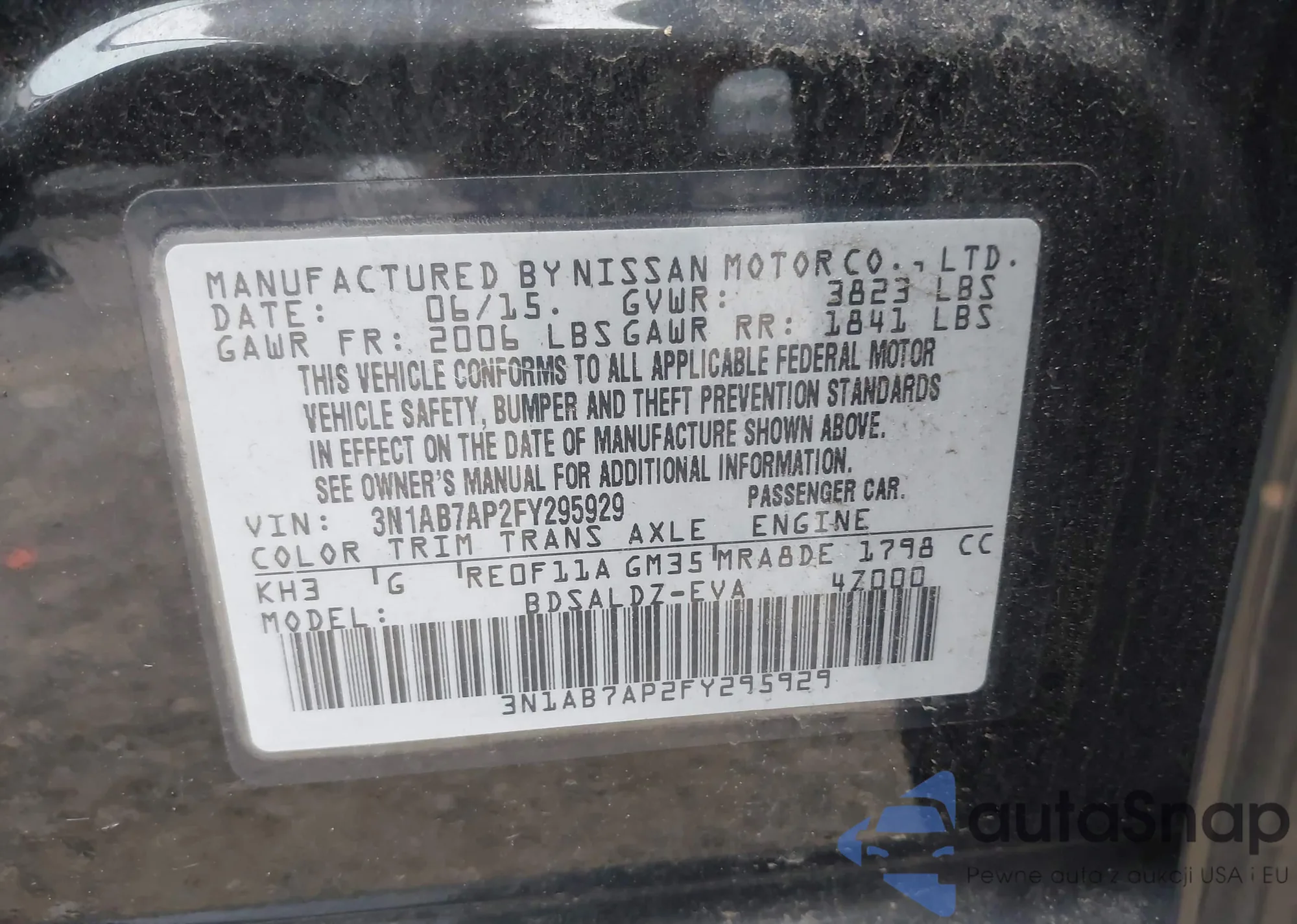 LOT: 42915048 VIN: 3N1AB7AP2FY295929