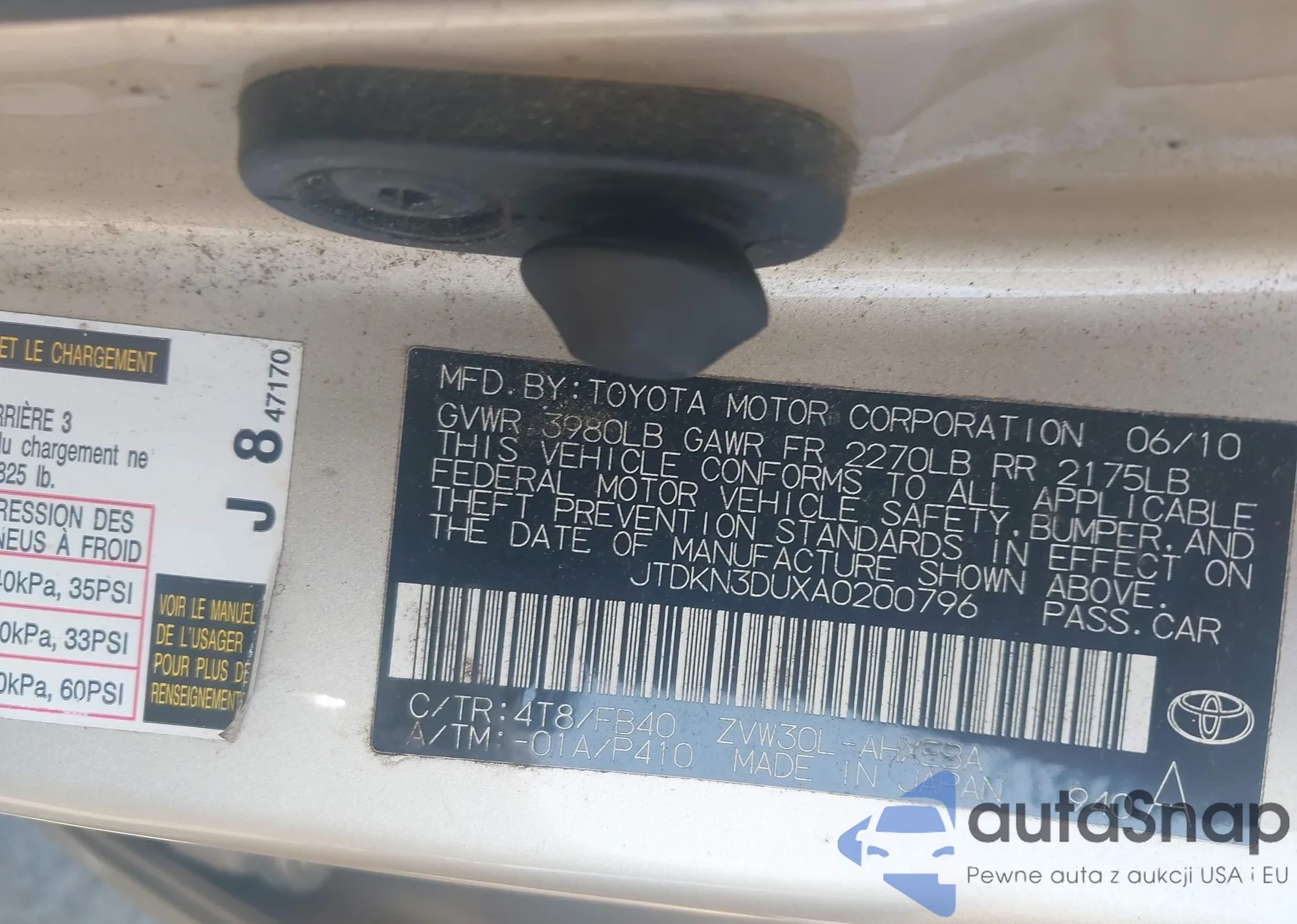 • VIN JTDKN3DUXA0200796