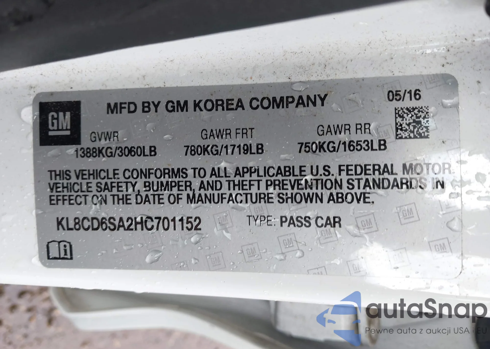 • VIN KL8CD6SA2HC701152