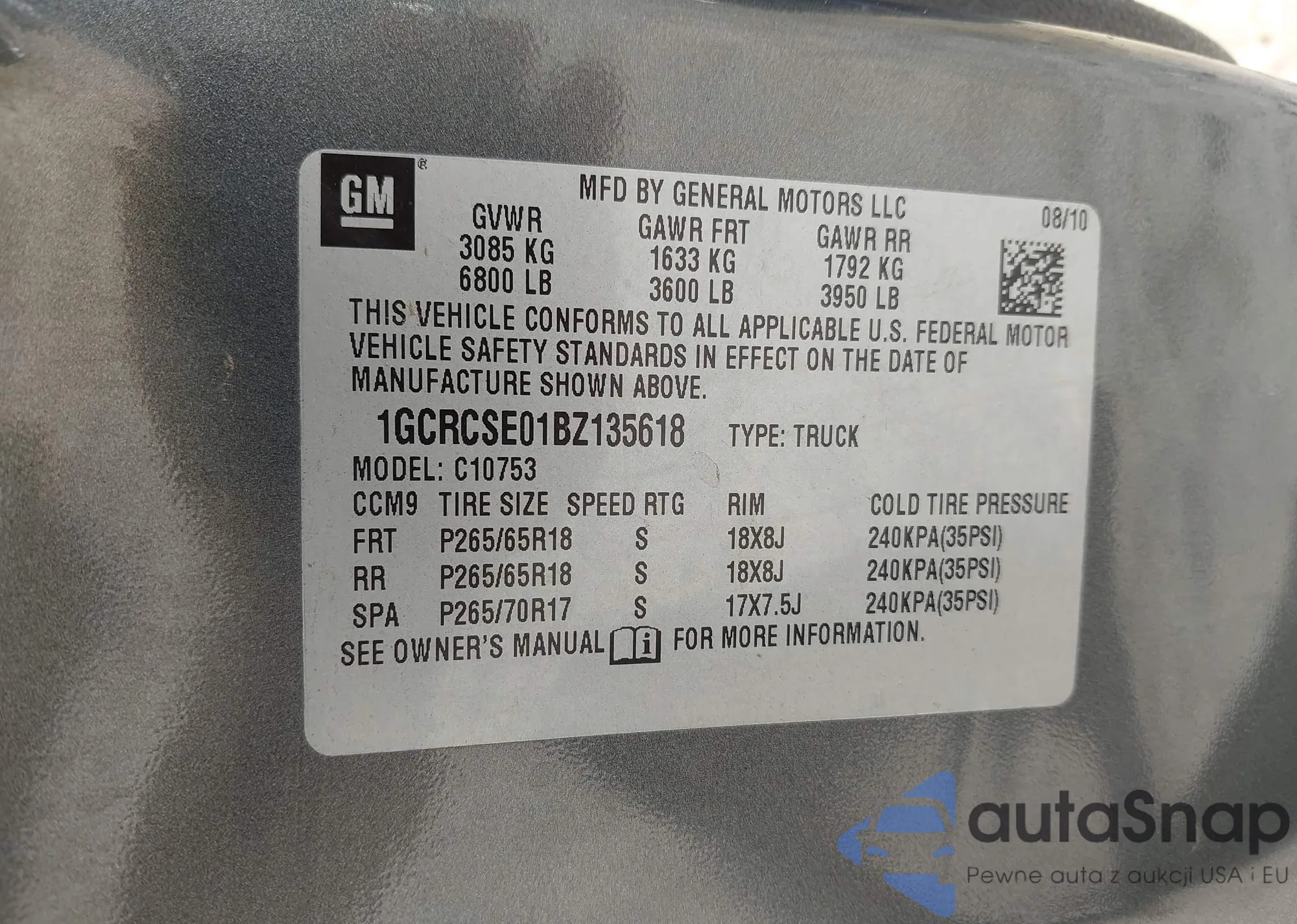 • VIN 1GCRCSE01BZ135618