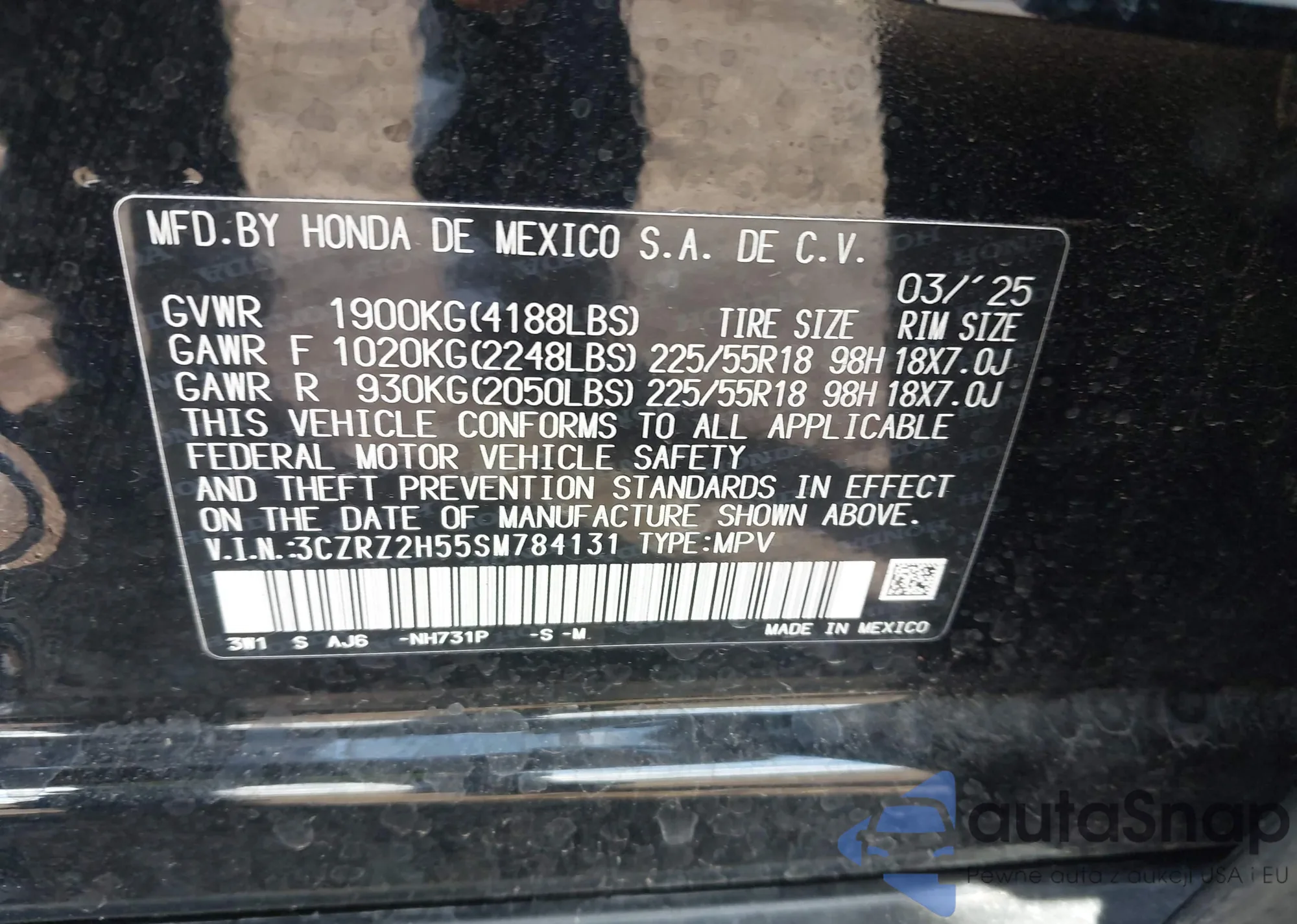 • VIN 5TDDZRFHXJS863282