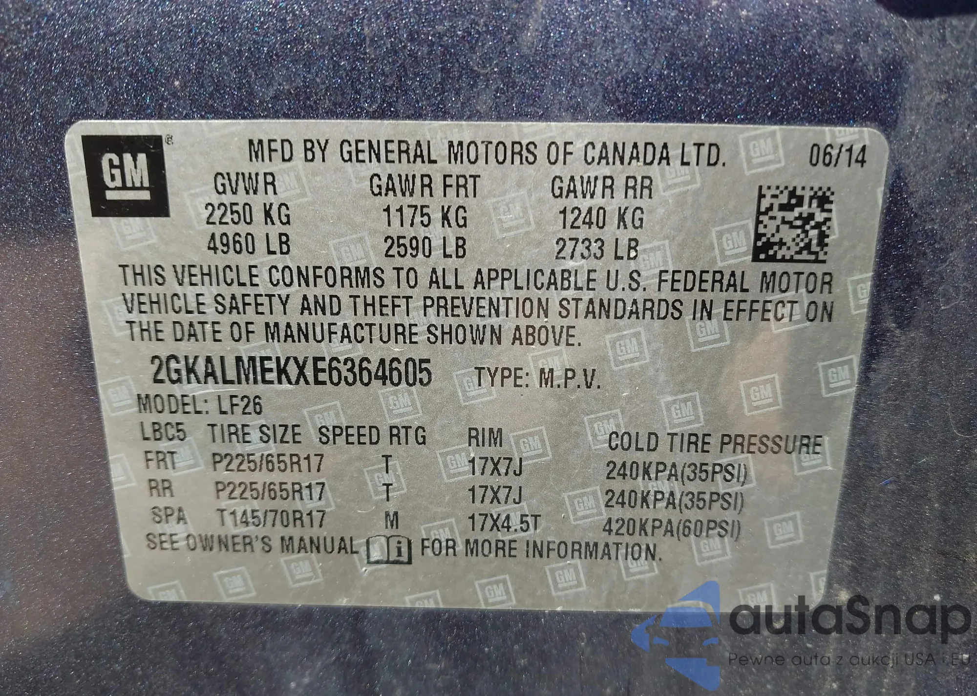 • VIN 2GKALMEKXE6364605