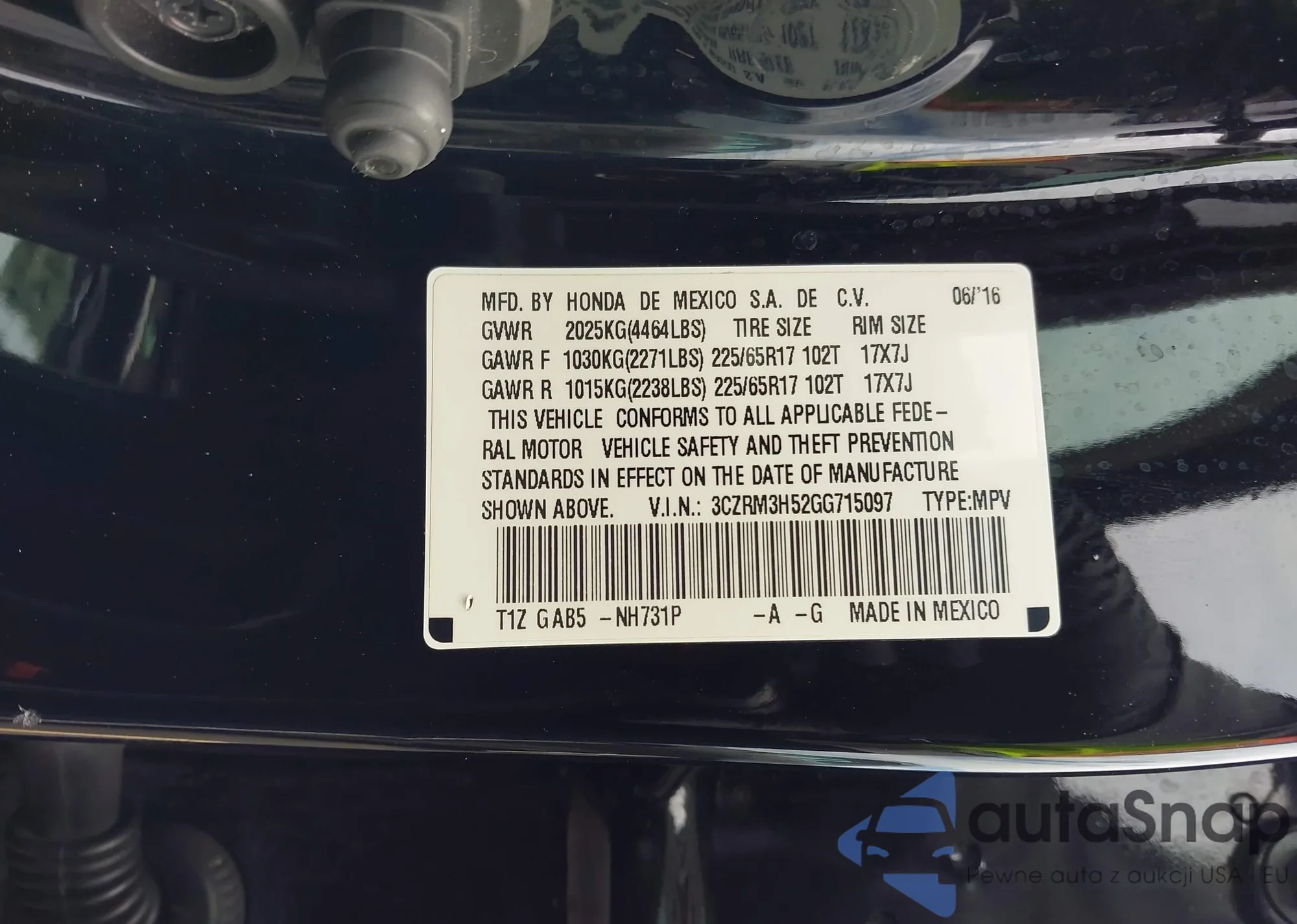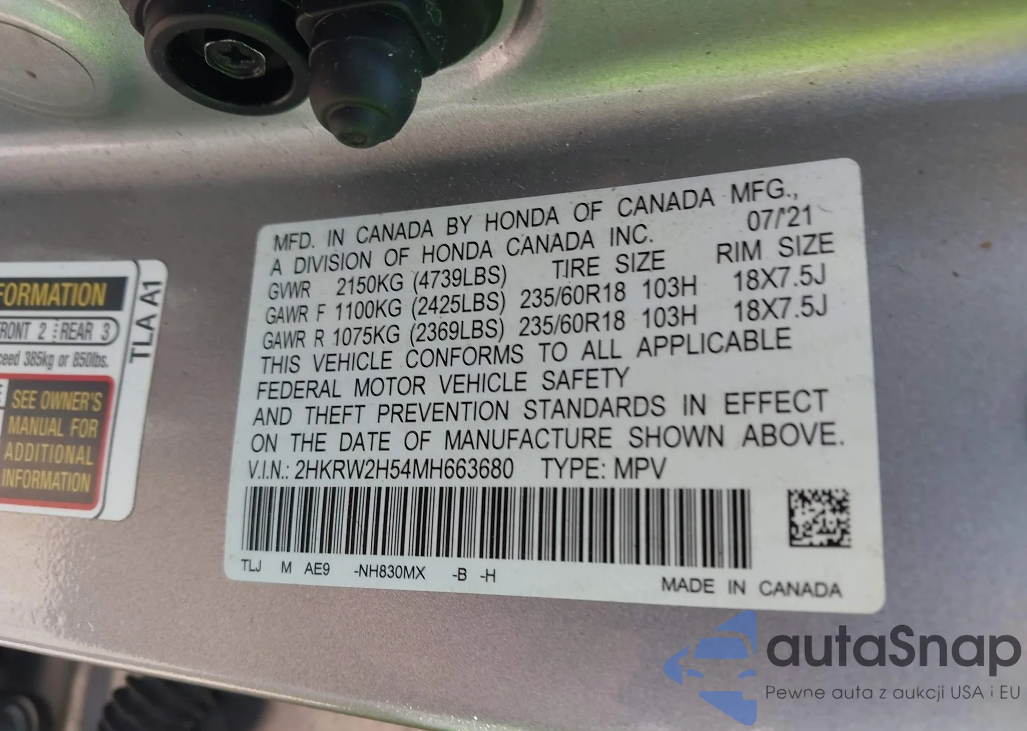 • VIN 2HKRW2H54MH663680