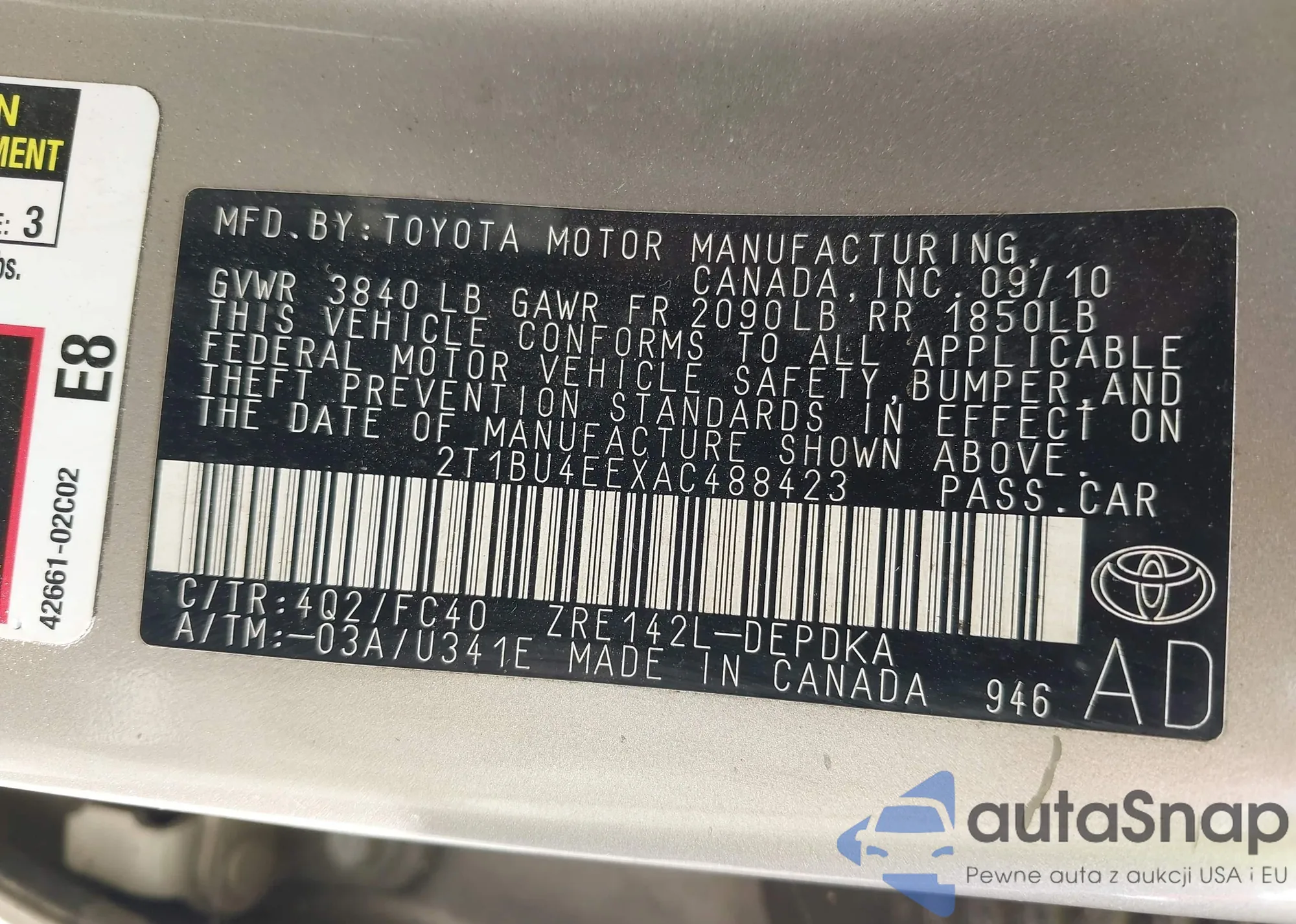 LOT: 43095036 VIN: JTDBT4K36A1379466