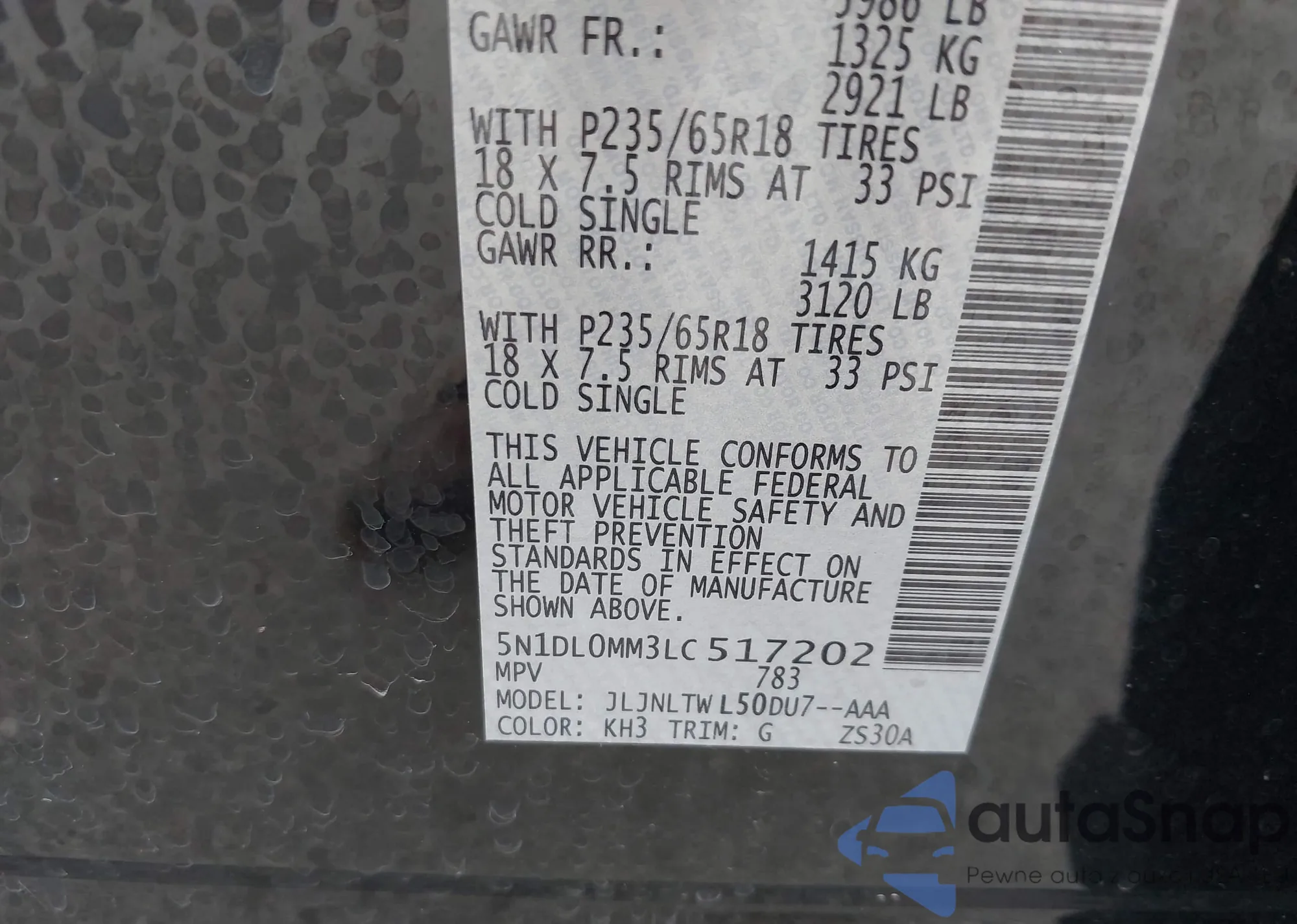 • VIN 1C4PJMBX0LD591845