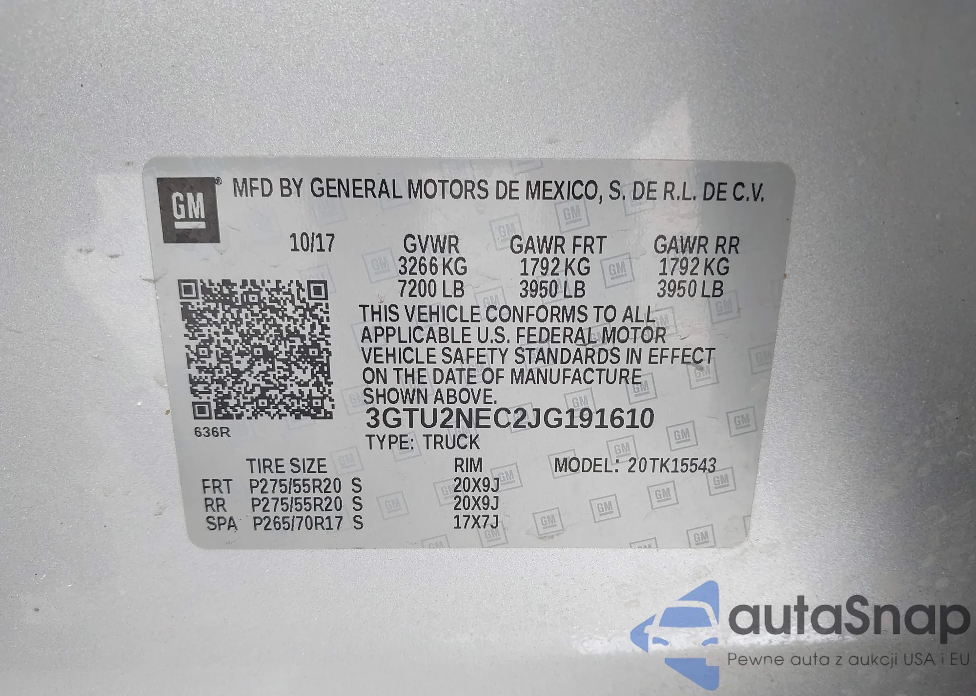LOT: 42528348 VIN: 1GCPKSE36BF196095