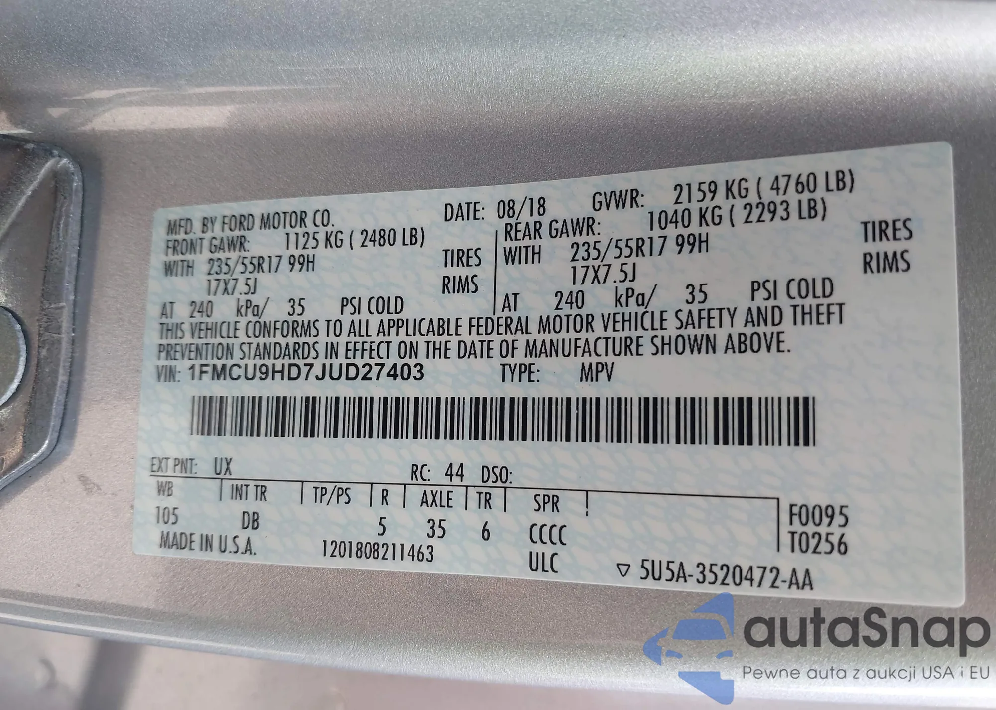 LOT: 42494568 VIN: 5XXG24J24MG081458