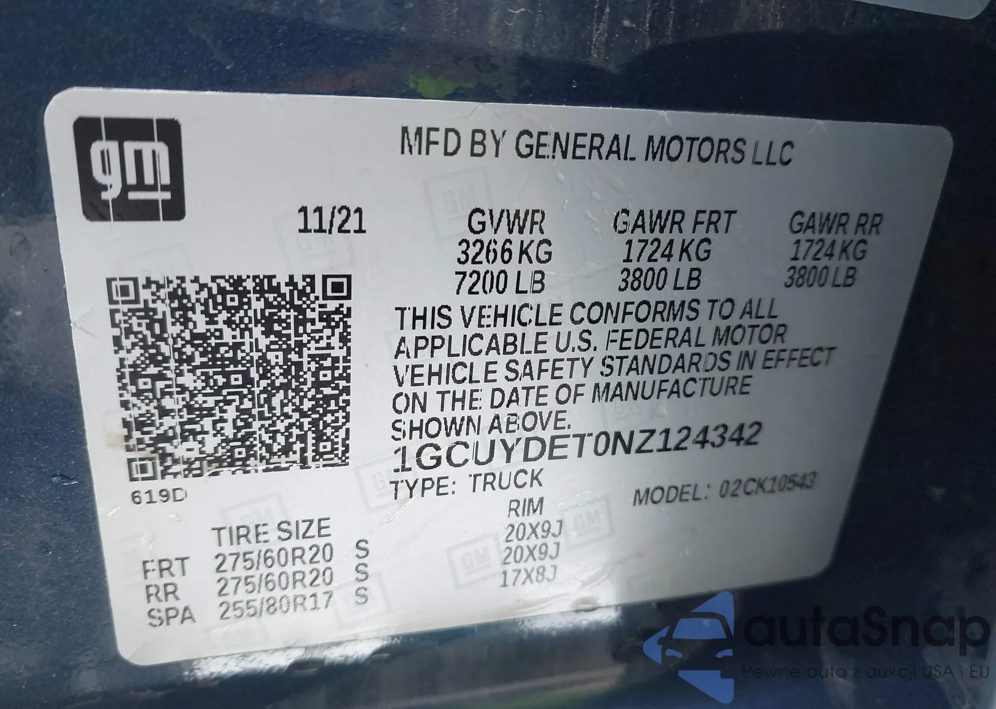 LOT: 42513550 VIN: 1GCUYDET0NZ124342