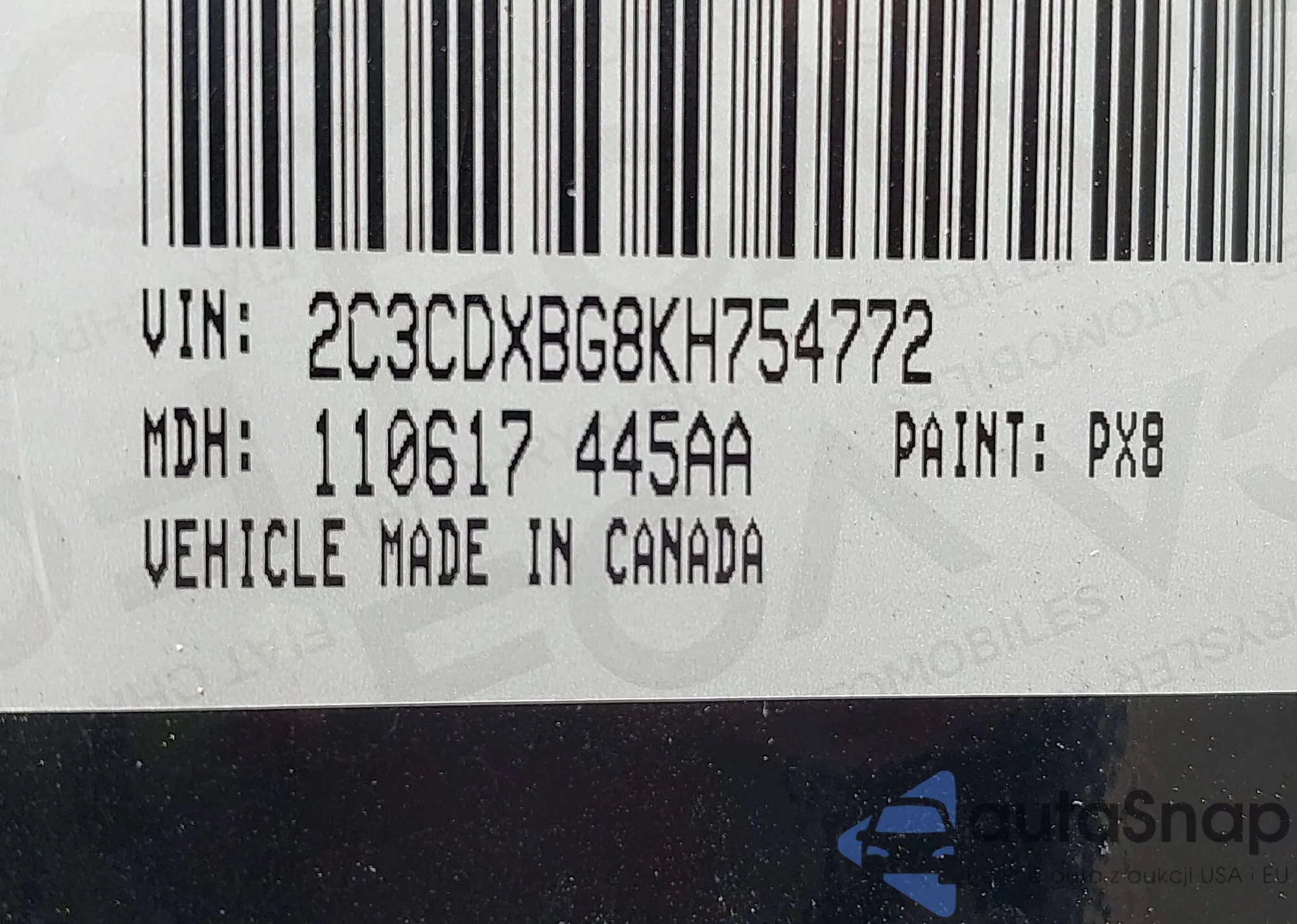 LOT: 42835138 VIN: 2C3CDXBG8KH754772