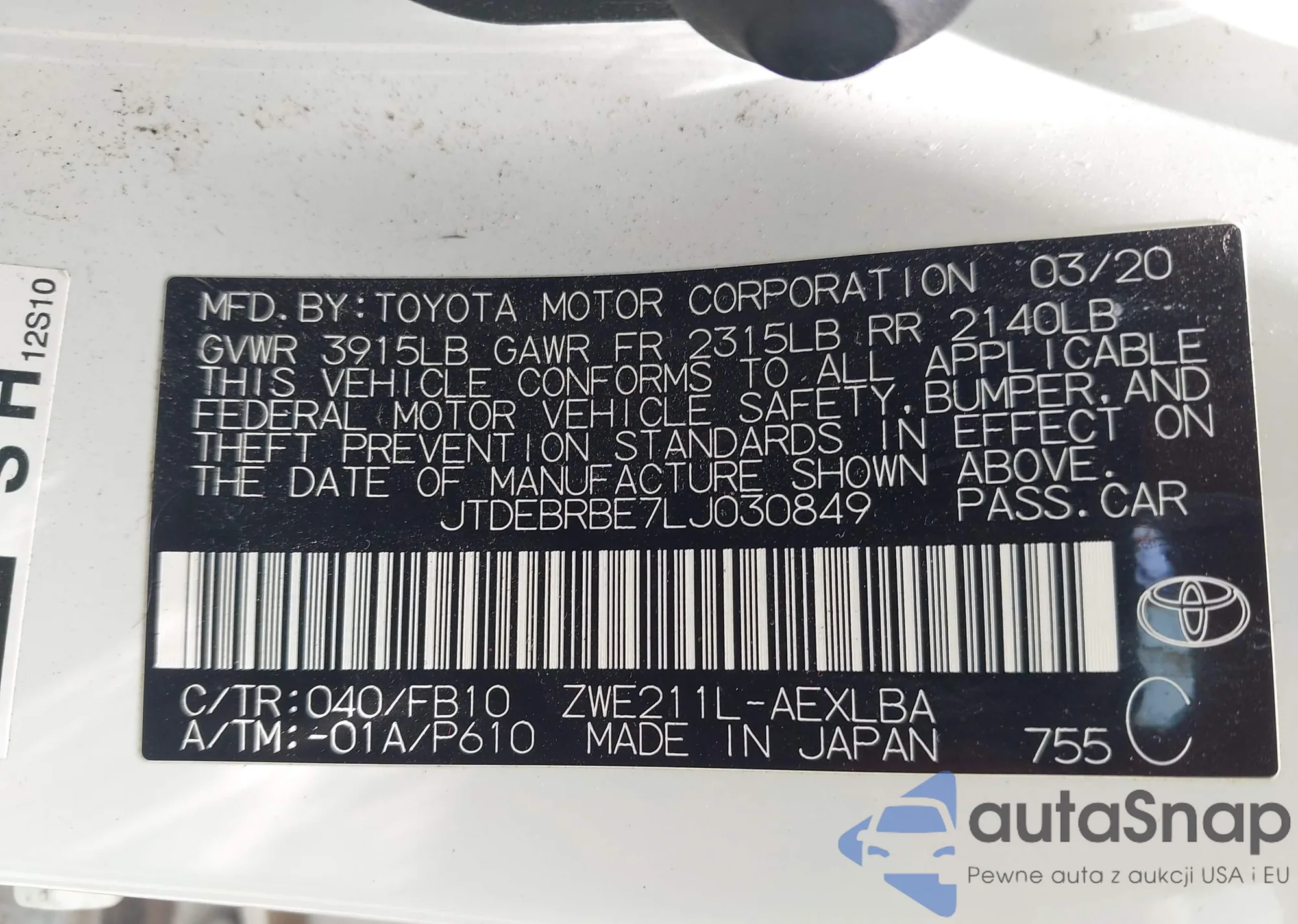 • VIN 4T1B11HK2JU678563
