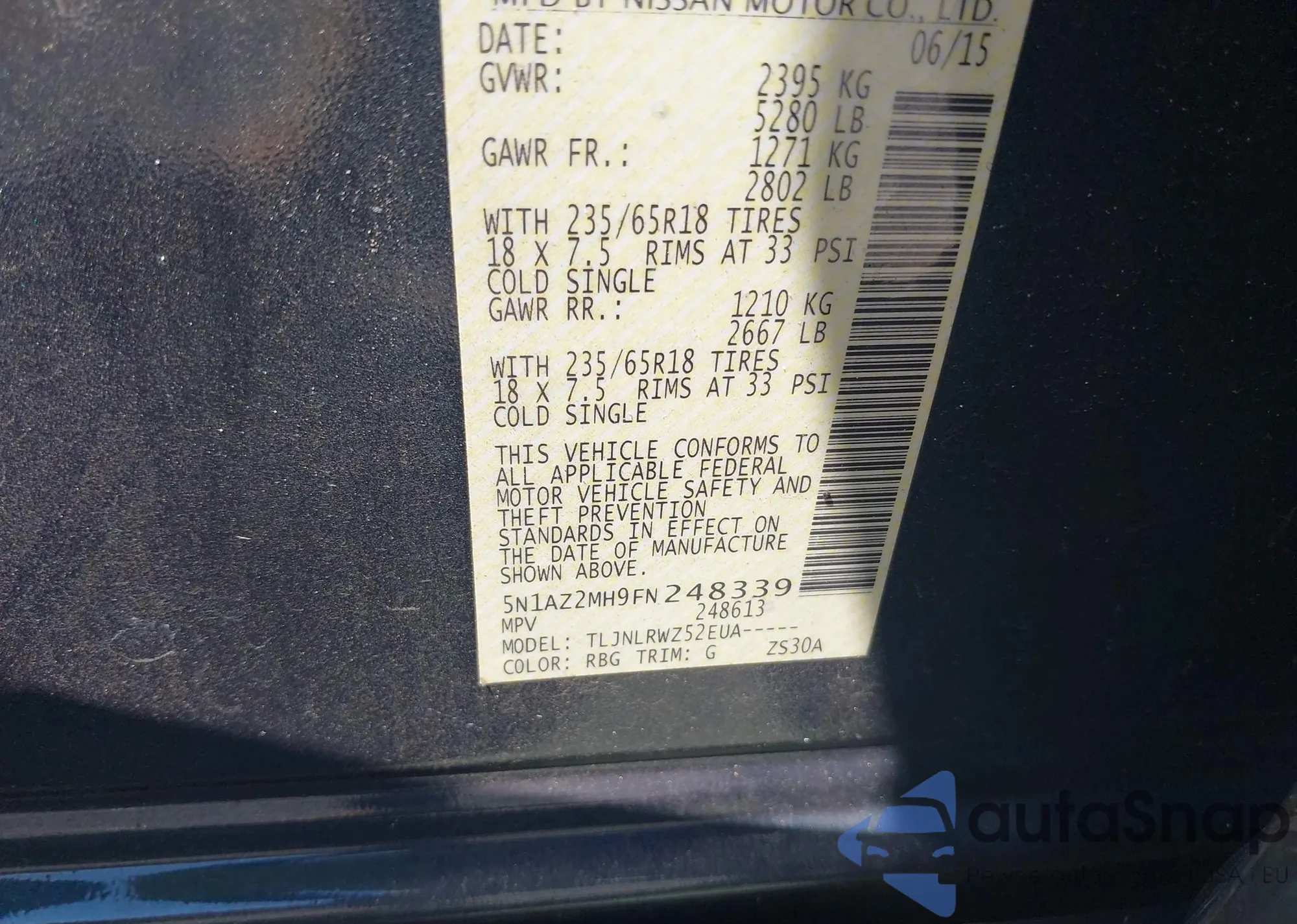 • VIN 5N1AZ2MH9FN248339