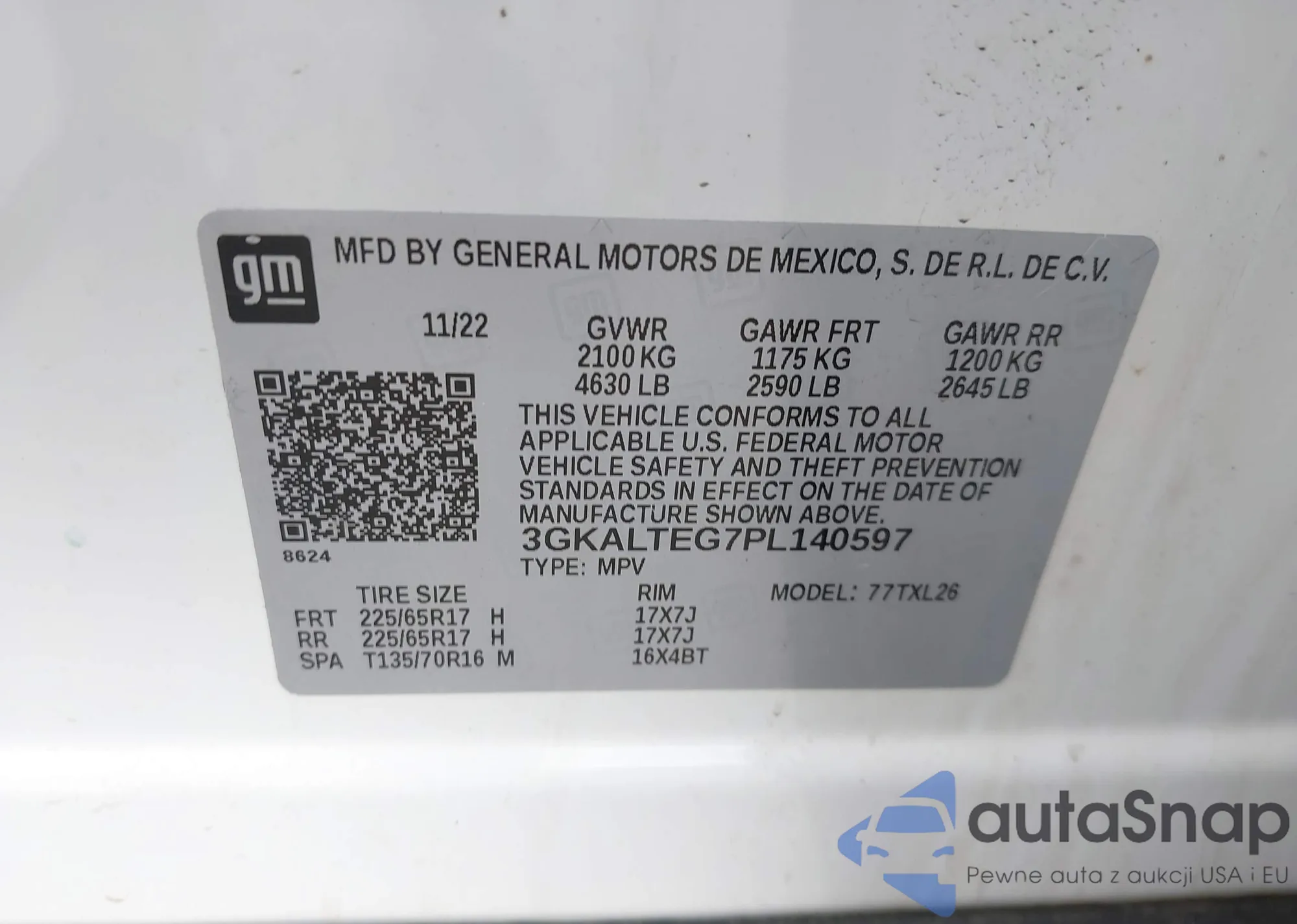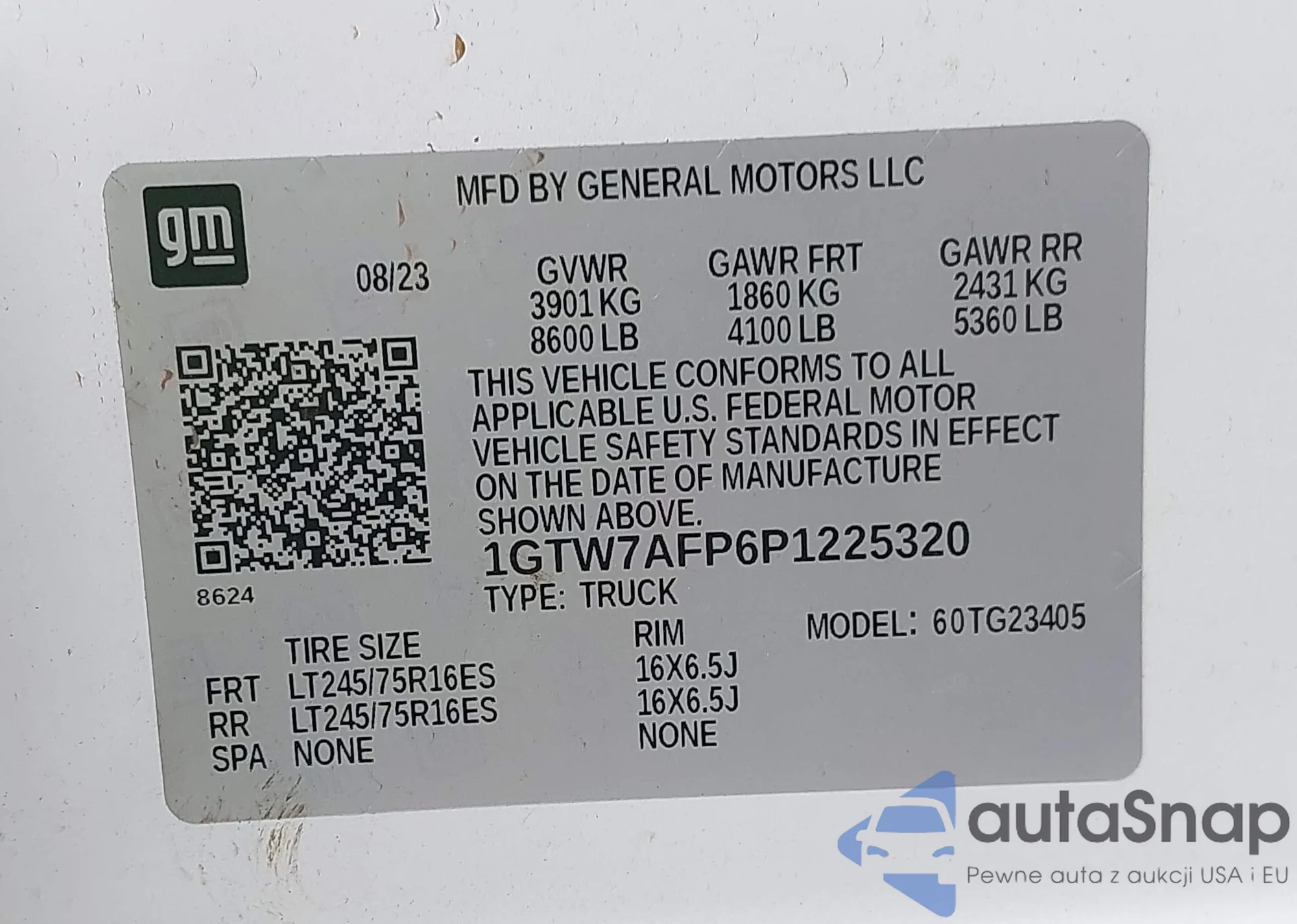 LOT: 43026130 VIN: 1GTW7AFP6P1225320