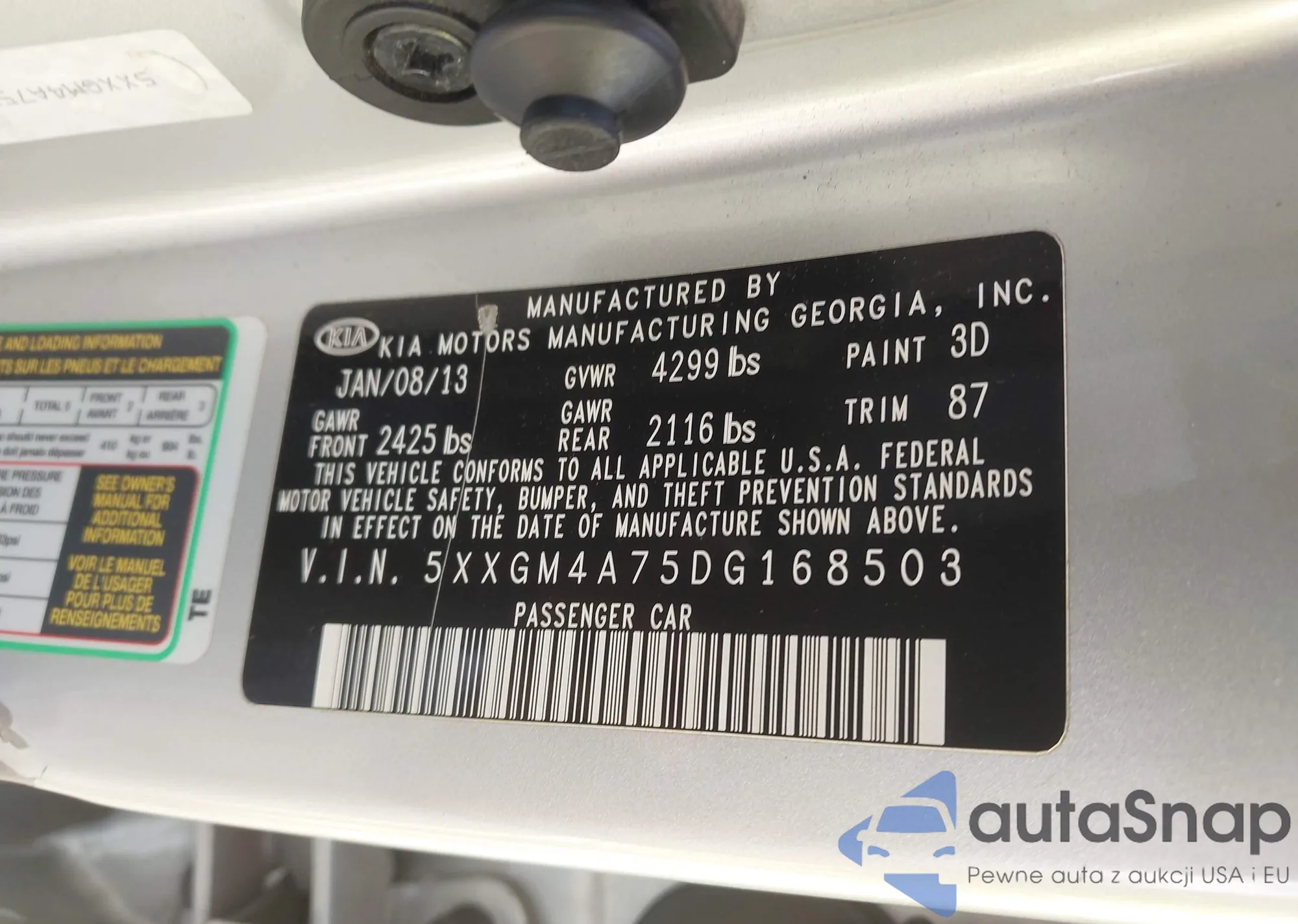 LOT: 43107011 VIN: 5XXGM4A75DG168503