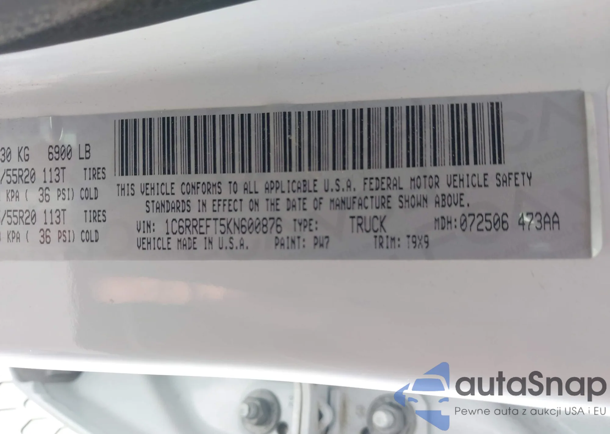 LOT: 42931501 VIN: ZARFANAN3K7601840