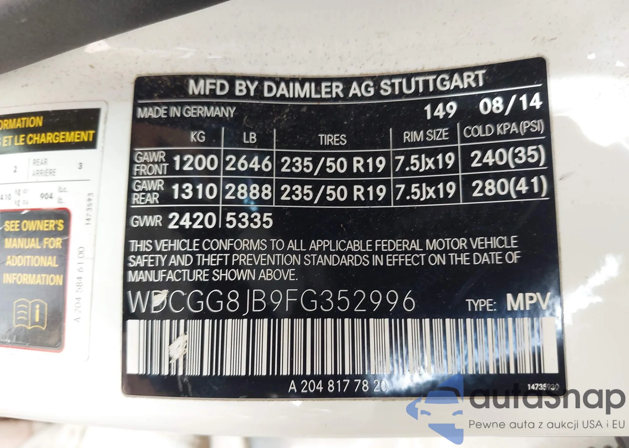 • VIN WDCGG8JB9FG352996