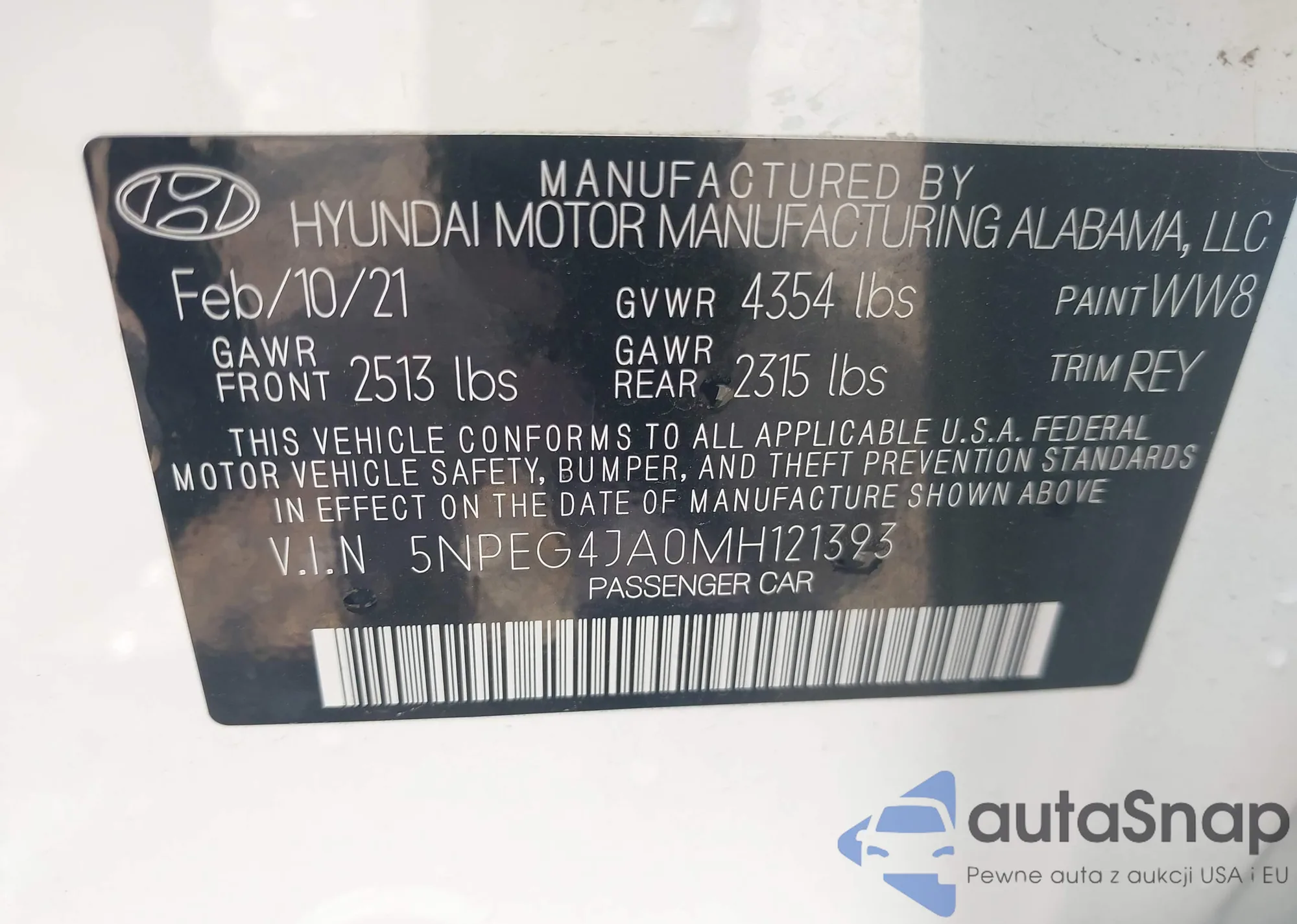 • VIN 5NPEG4JA0MH121393