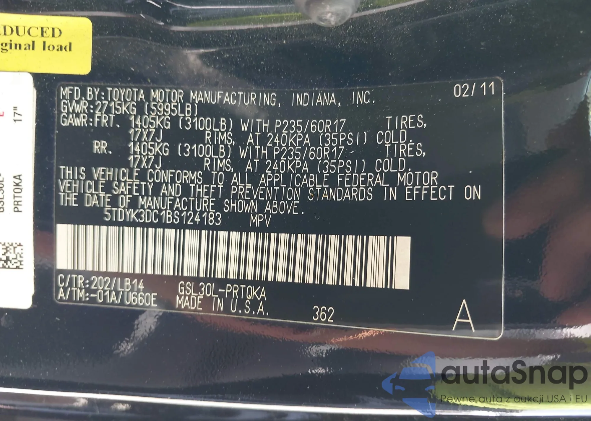 • VIN 5TDYK3DC1BS124183