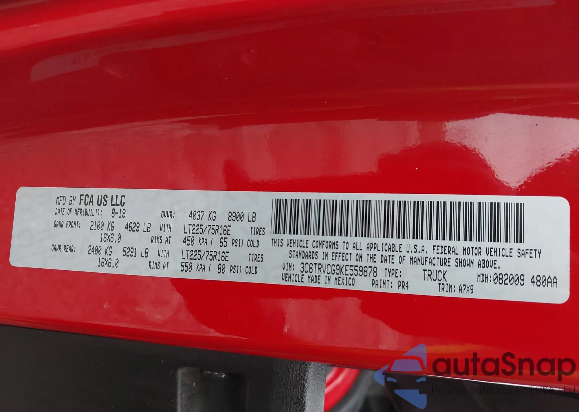 • VIN 3C6TRVCG9KE559878
