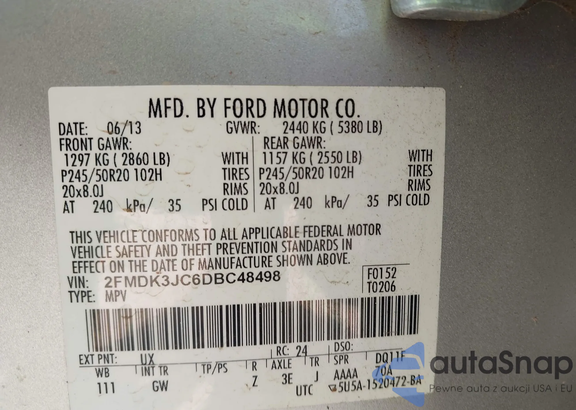 LOT: 42856652 VIN: WBAFU7C55BC876706