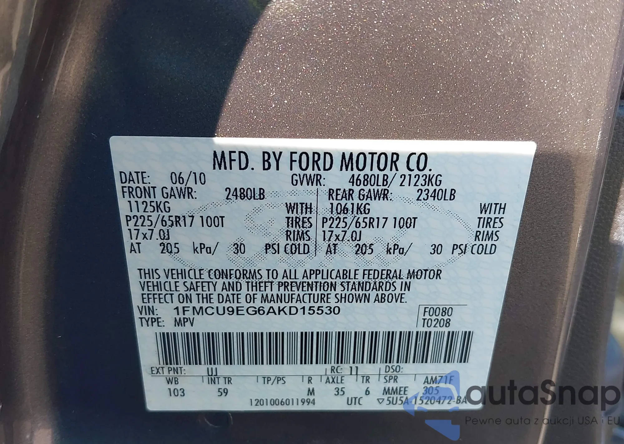 • VIN 1FMCU9EG6AKD15530