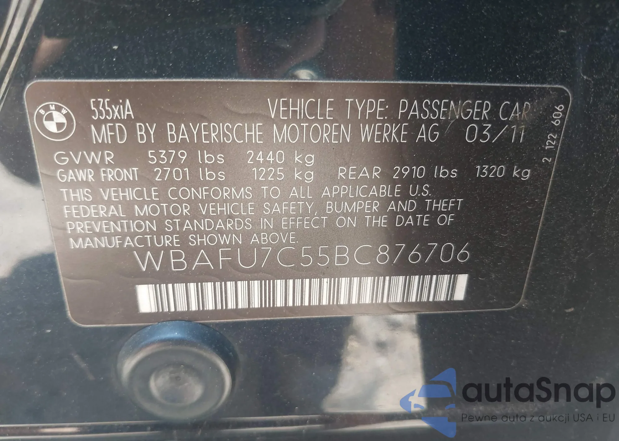 • VIN WBAFU7C55BC876706