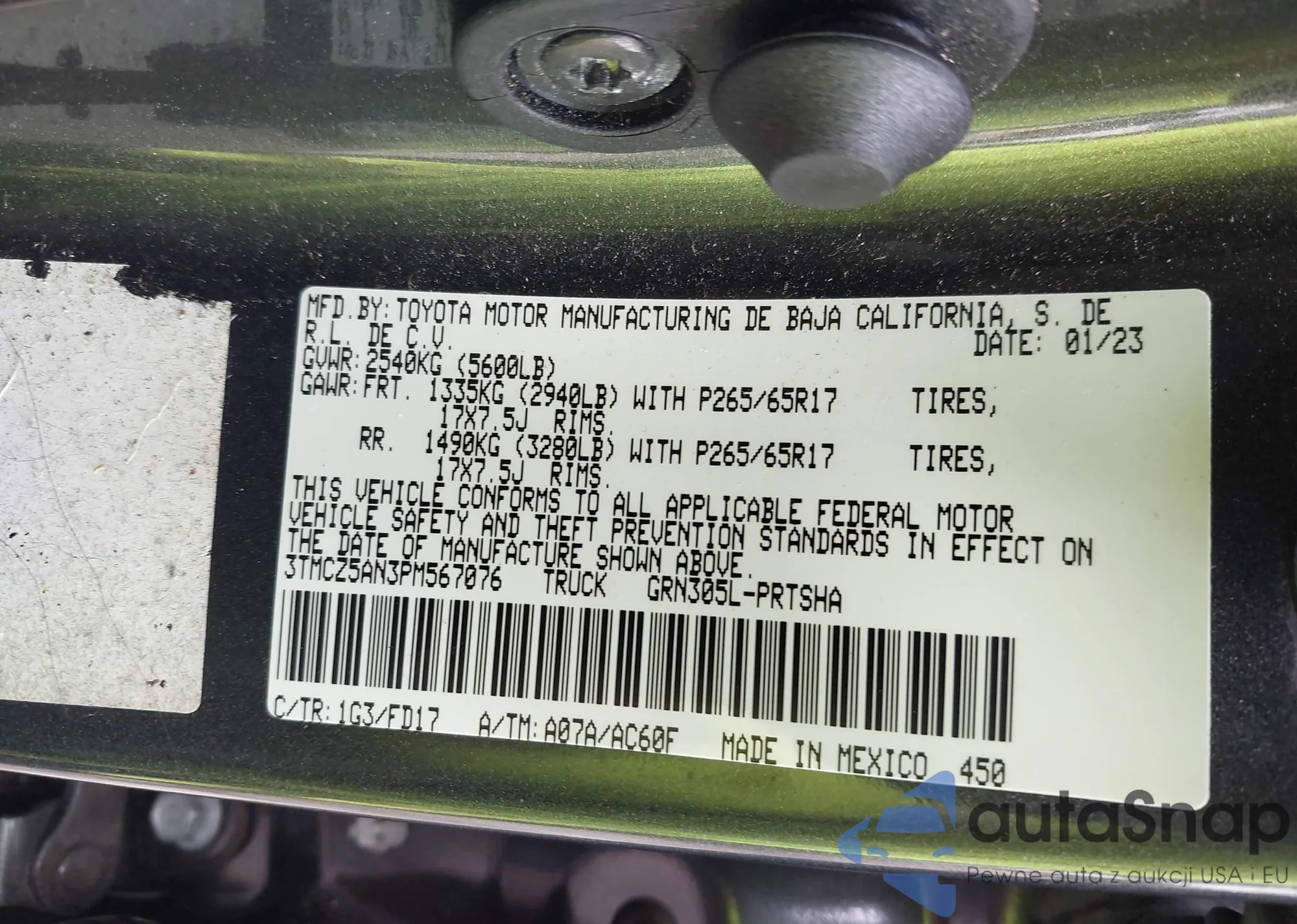 • VIN 3TMCZ5AN3PM567076