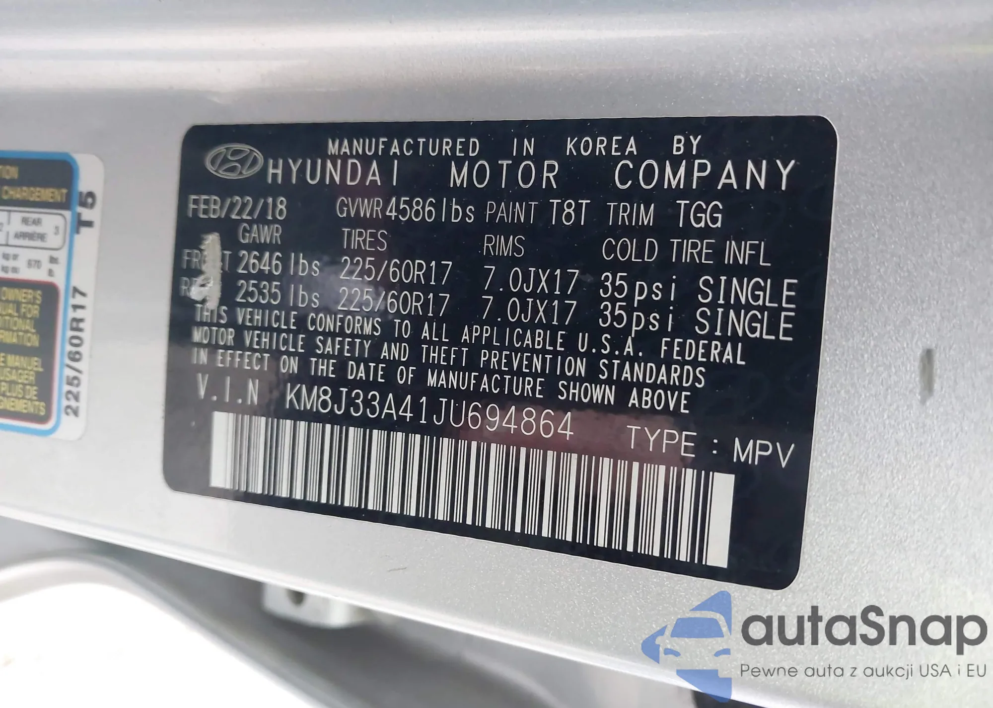 • VIN KM8J33A41JU694864