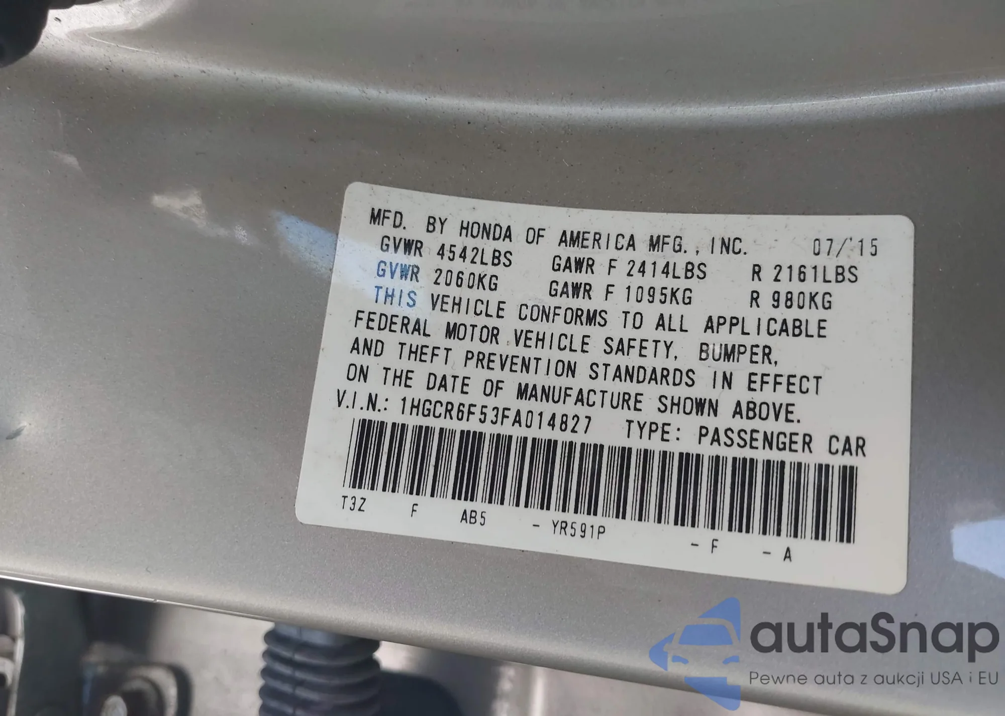 LOT: 42326413 VIN: 1HGCR6F53FA014827