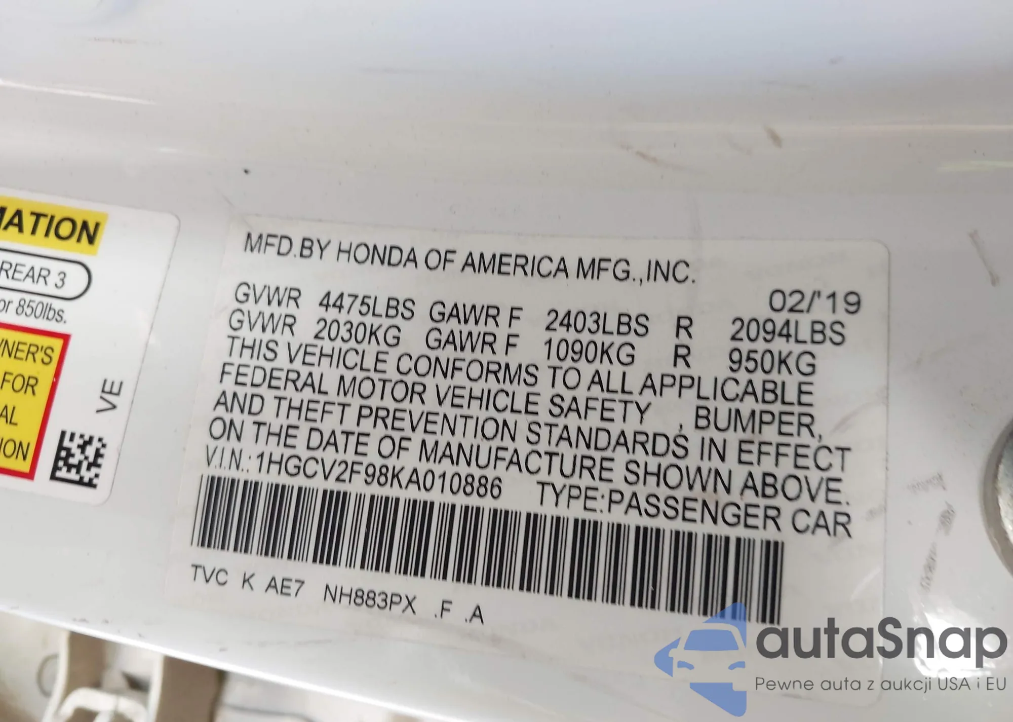 • VIN 1HGCR6F53FA014827