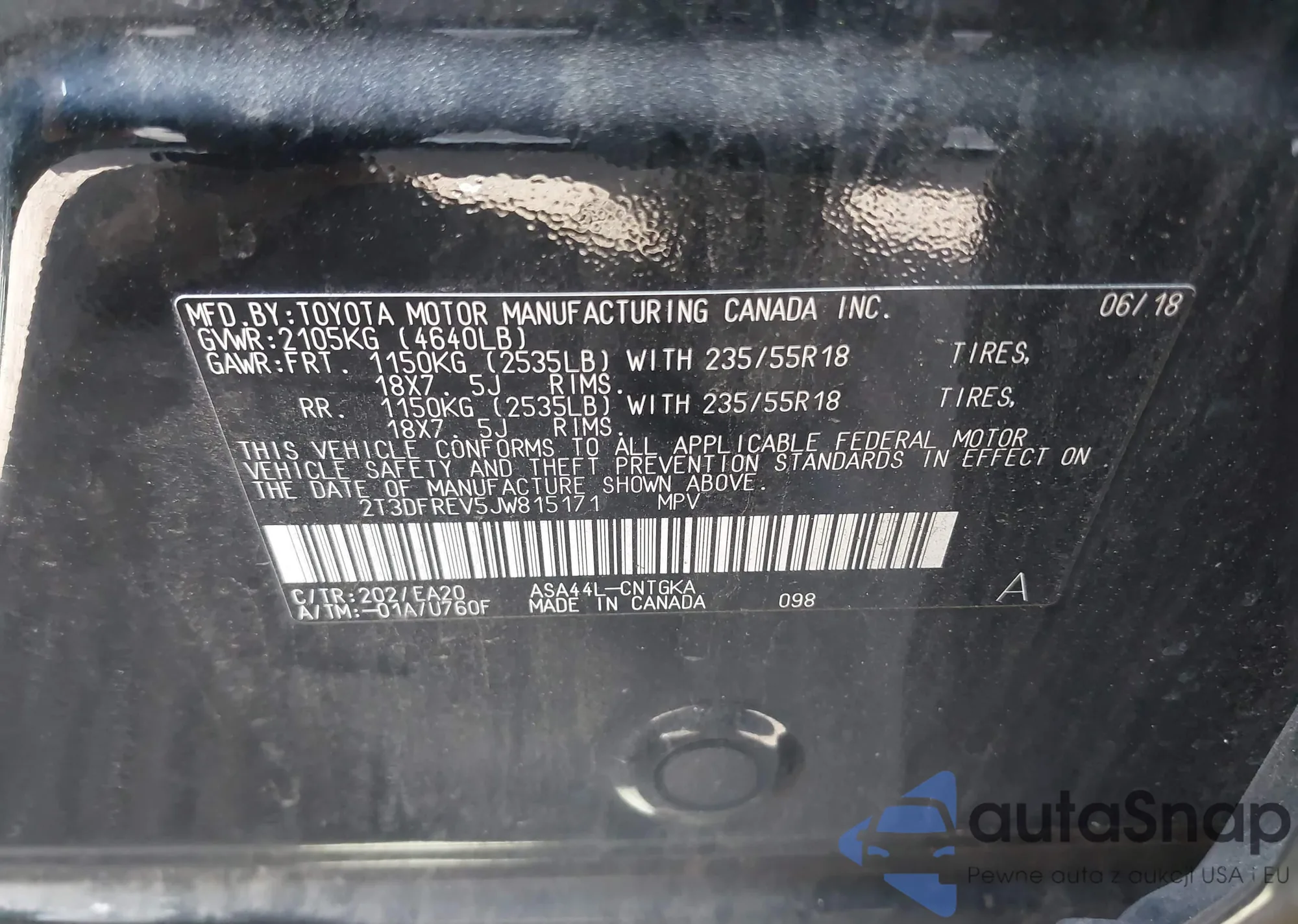 • VIN 2T3DFREV5JW815171