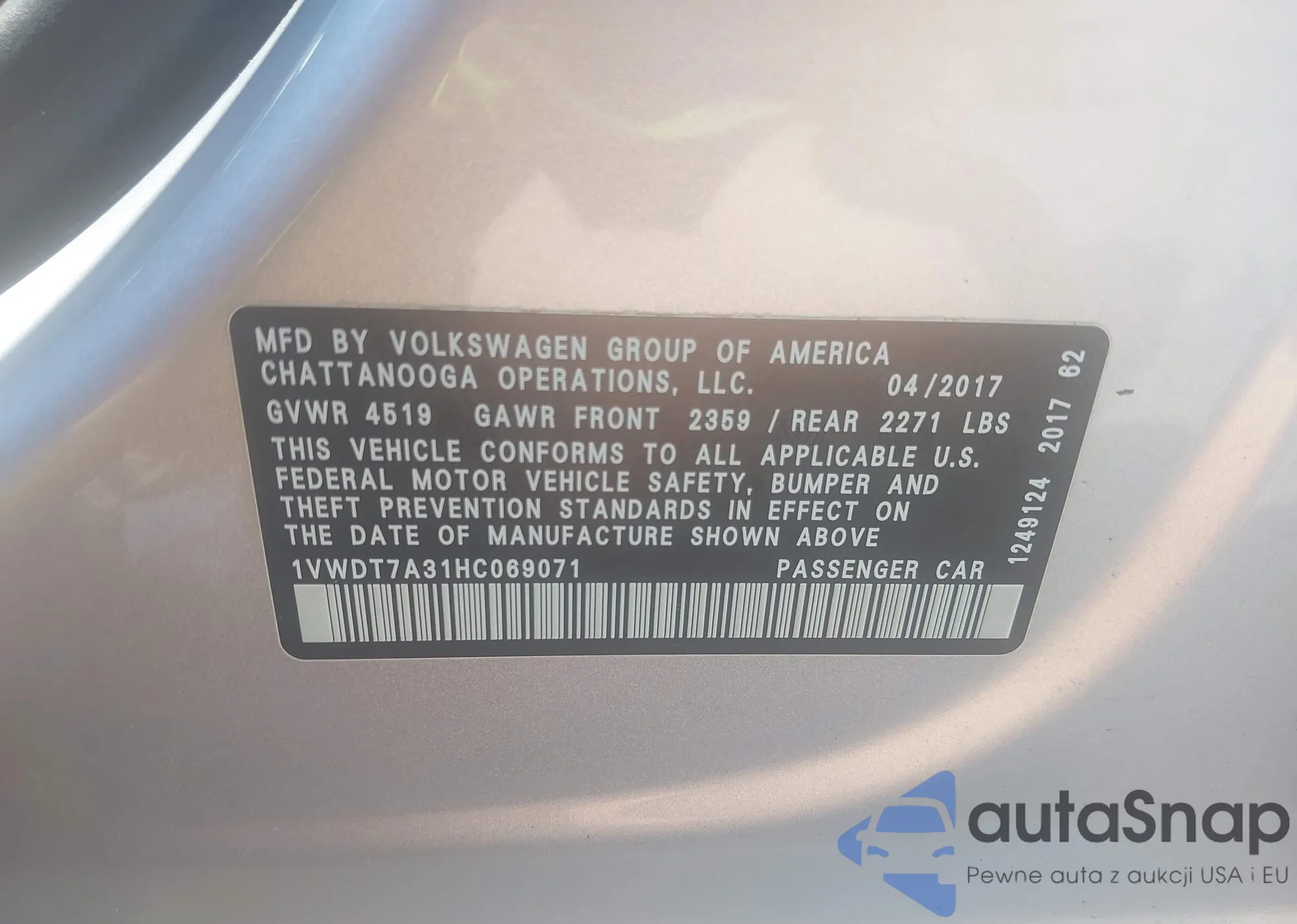 LOT: 43098028 VIN: 1VWDT7A31HC069071