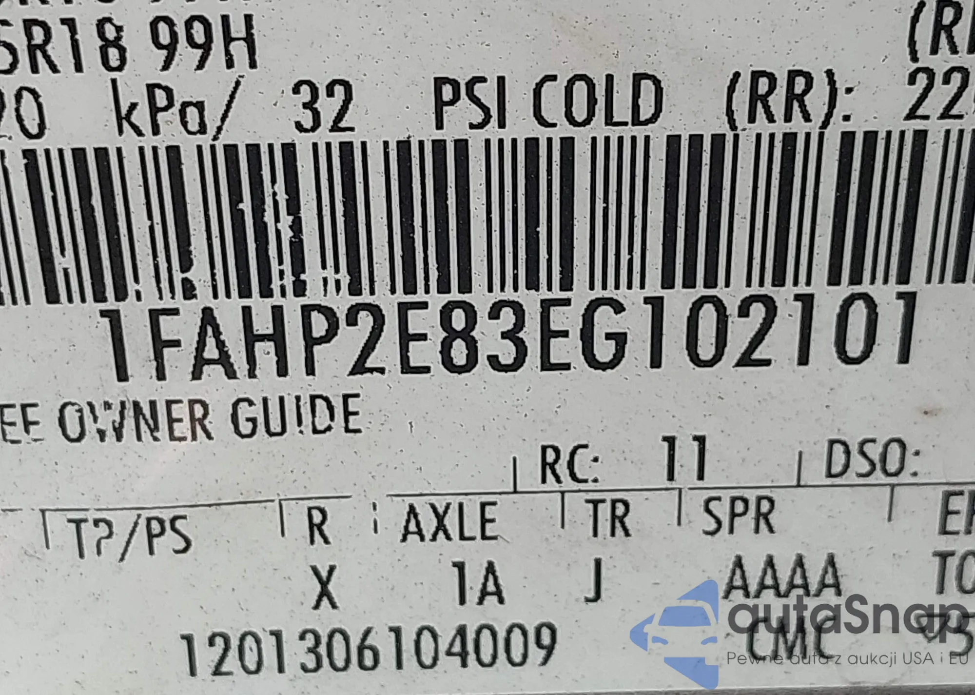 LOT: 43108111 VIN: 1FAHP2E83EG102101