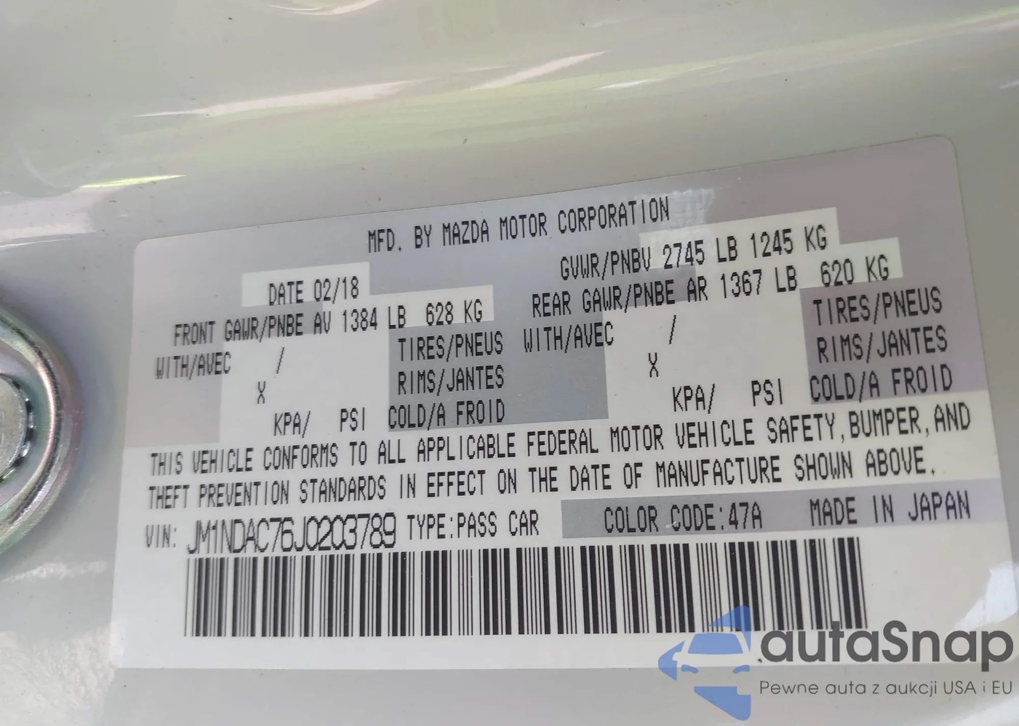 LOT: 43125368 VIN: WA1WKAFPXBA058980