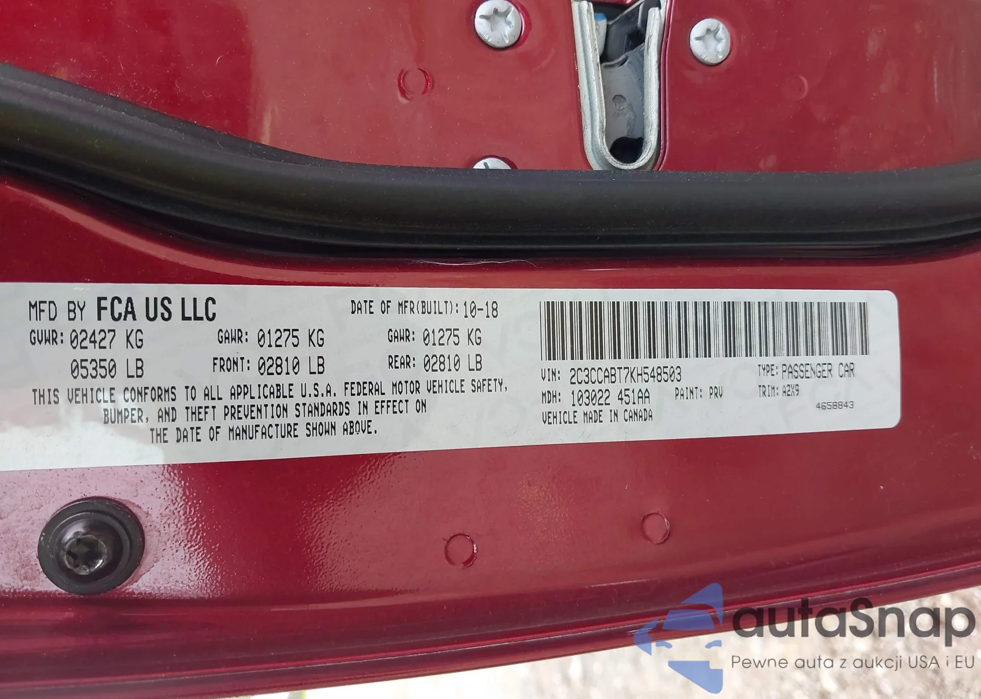 • VIN 2C3CCABT7KH548503