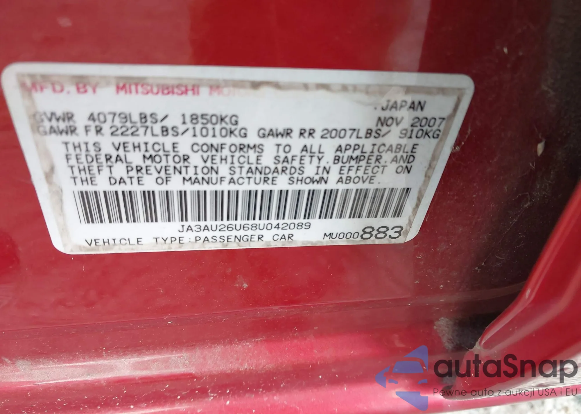 LOT: 42818594 VIN: JA3AU26U68U042089