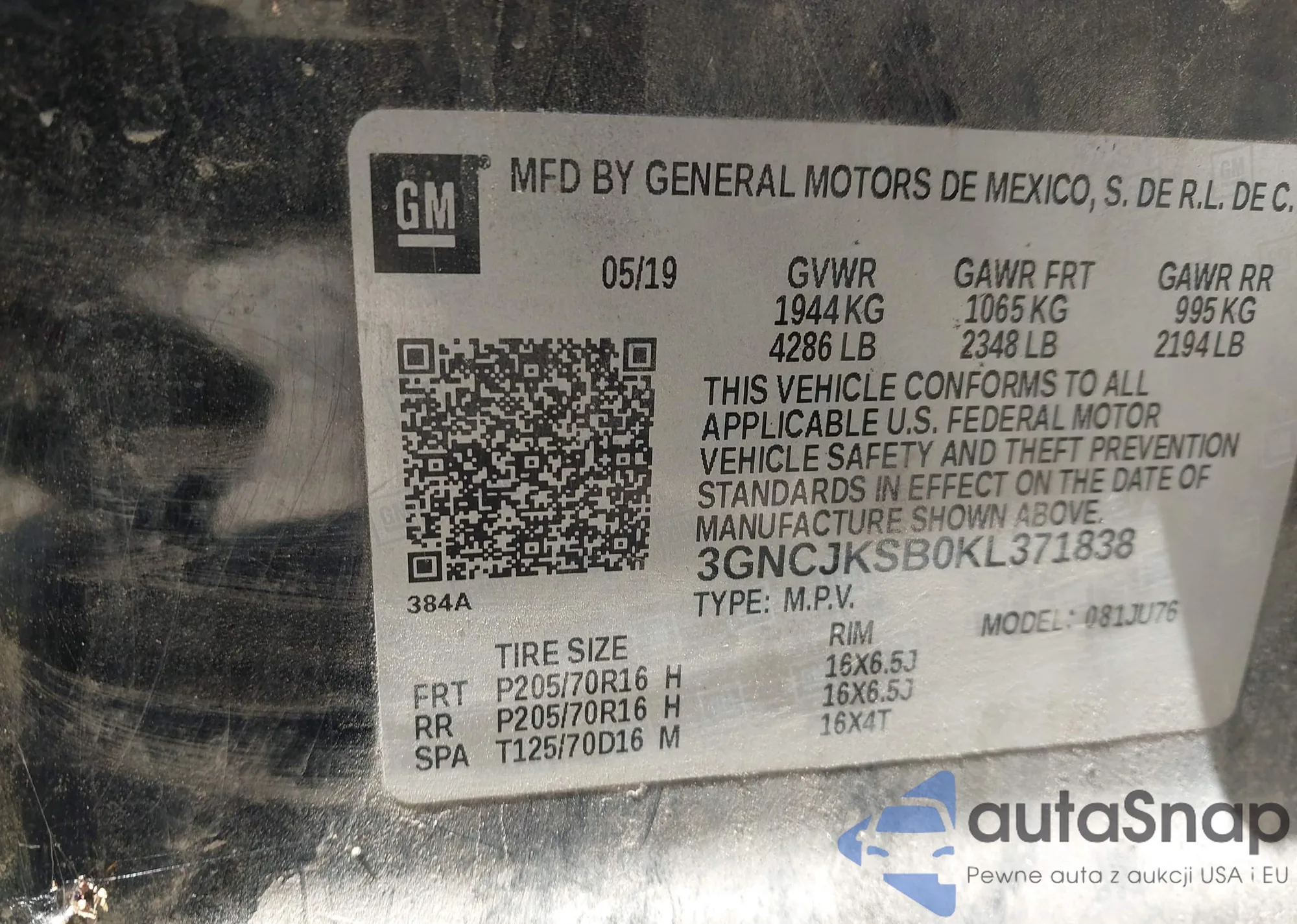• VIN KL79MPSLXPB158904