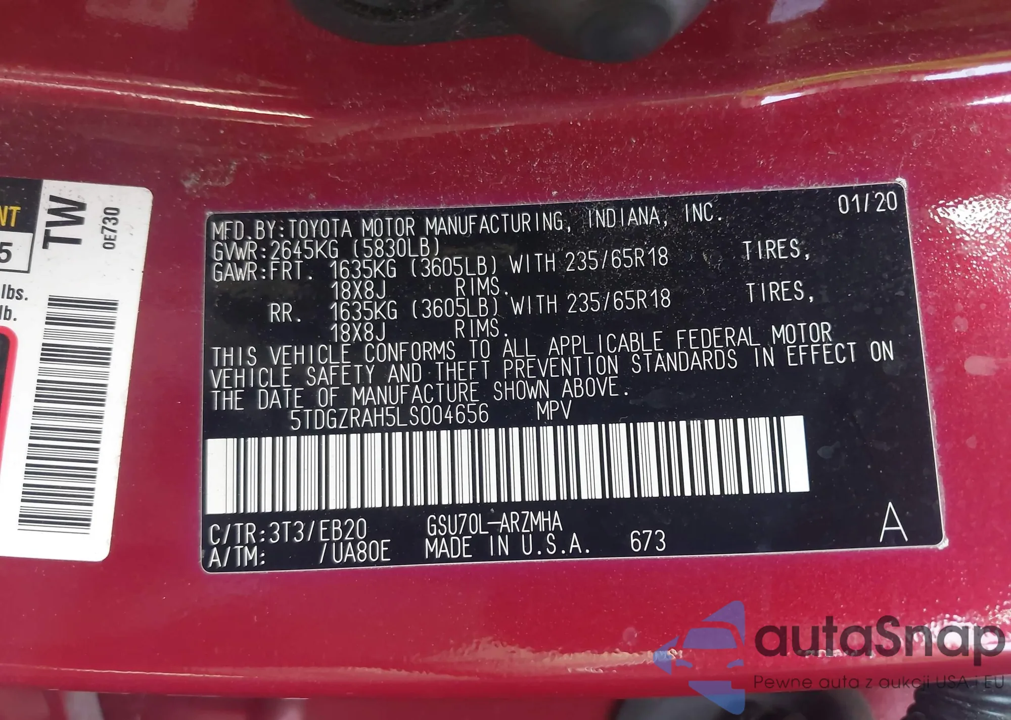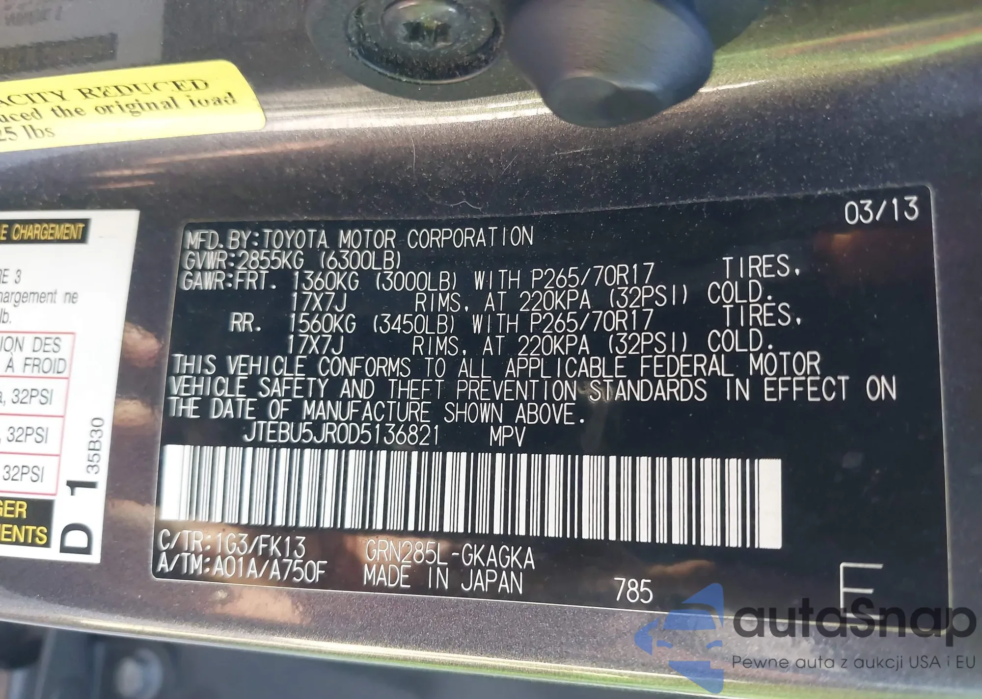 LOT: 43153729 VIN: JTEBU5JR0D5136821