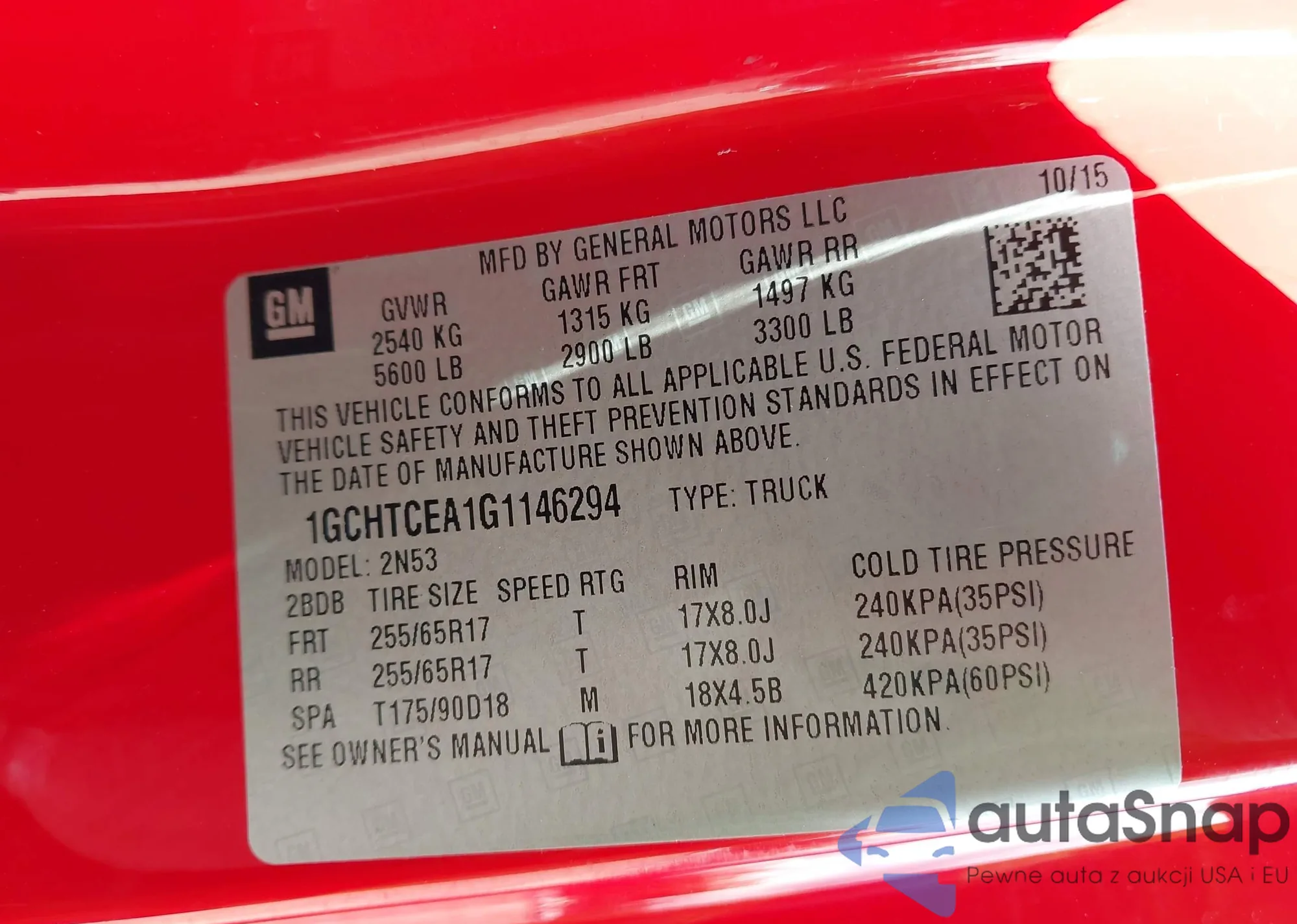LOT: 42833564 VIN: 1GCHTCEA1G1146294