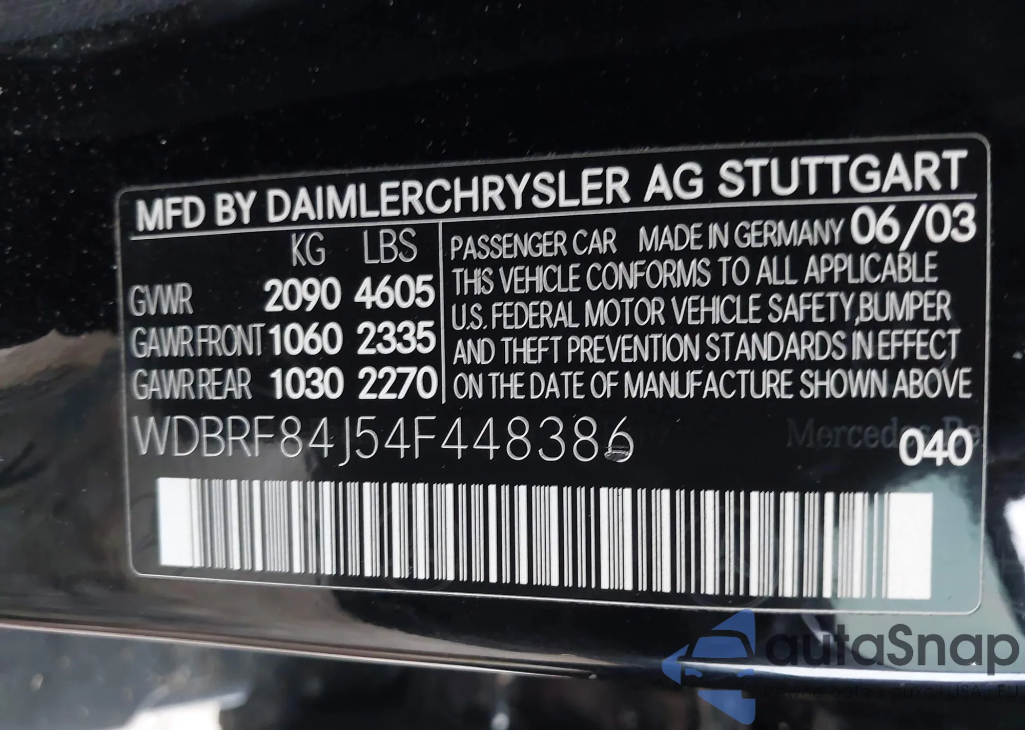 LOT: 42949050 VIN: WDBRF84J54F448386
