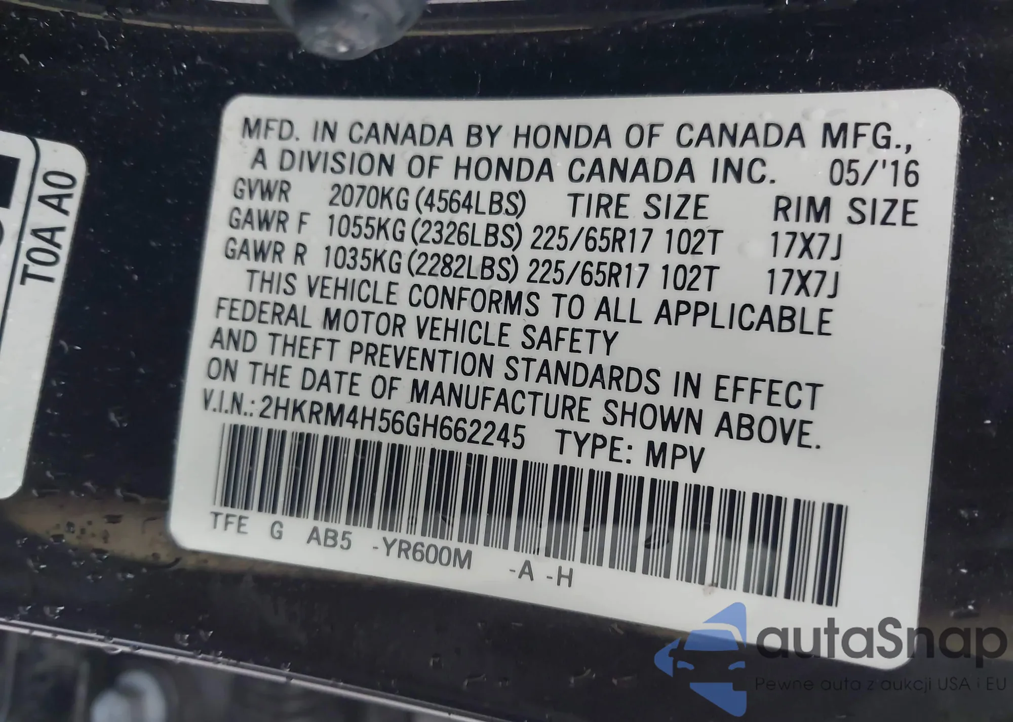 • VIN JF2GTHRC8MH224997
