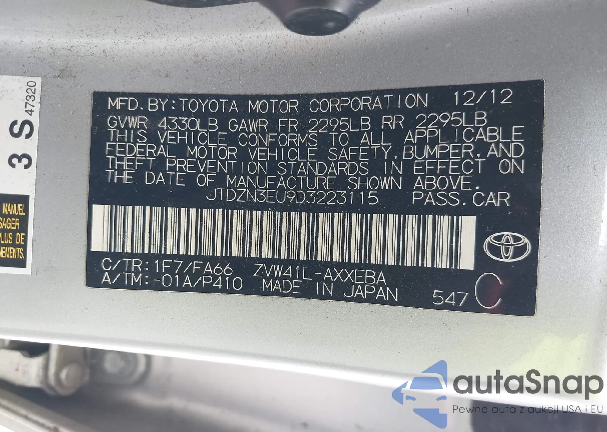 • VIN JTDZN3EU9D3223115