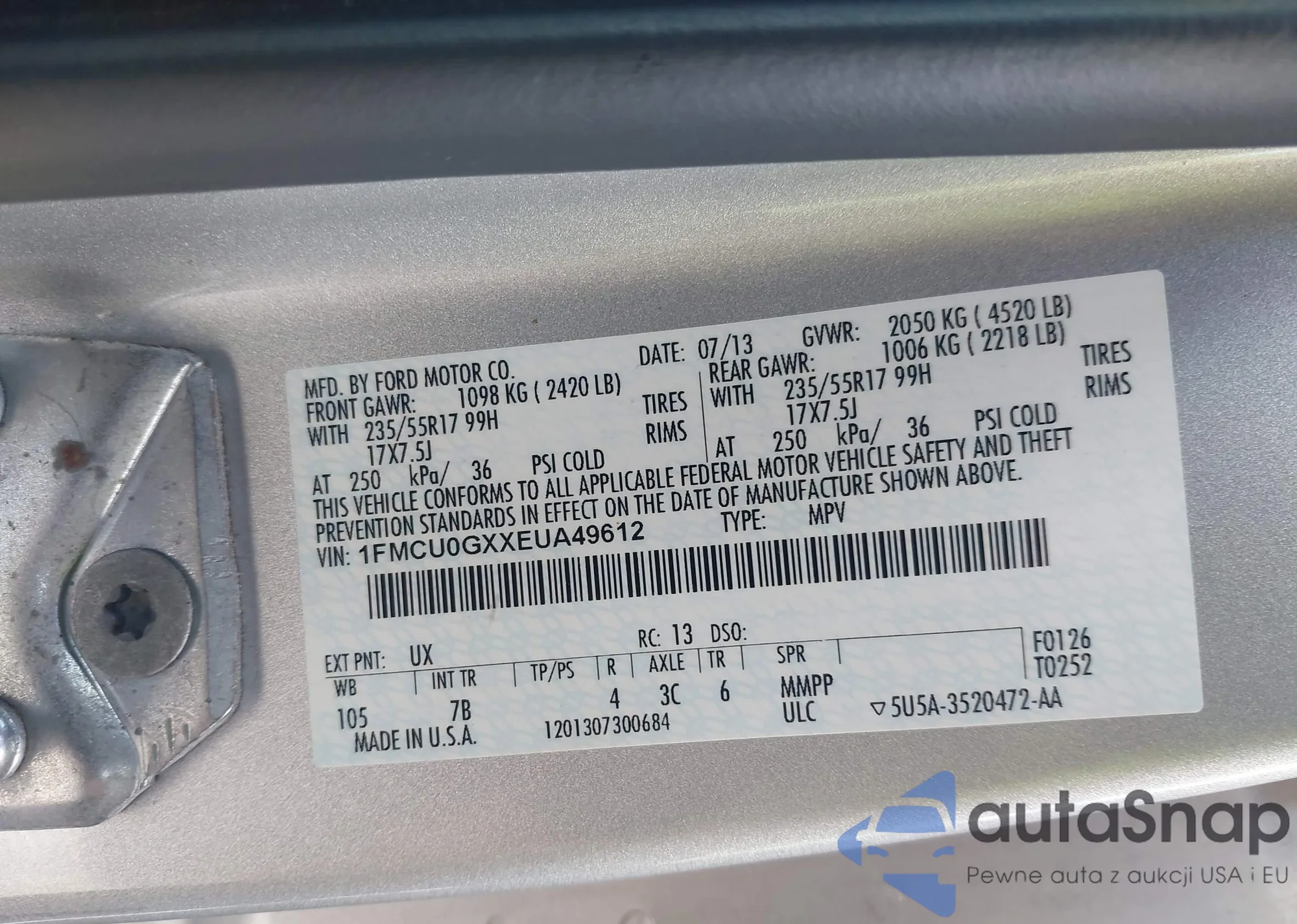 • VIN 1FMCU0GXXEUA49612